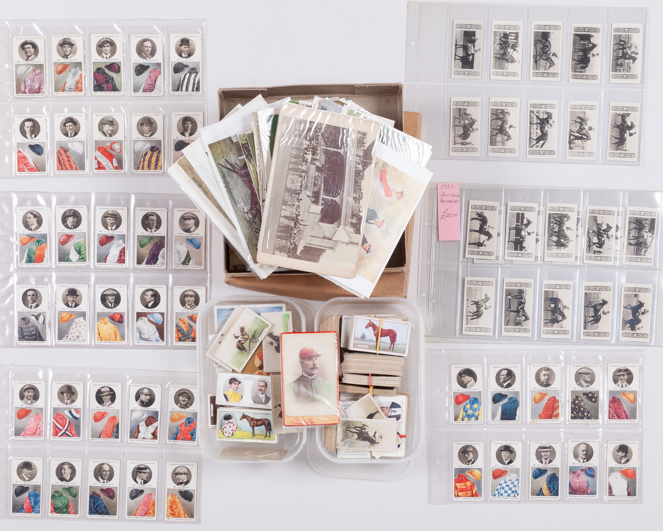 publishers including Gallaher, John Player, Ogdens, B Muratti Sons & Co., Godfrey Phillips, Turf Cigarettes, Kinney Bros., Chaiman Cigarettes & W D & H O Wills; sold with a collection of horse racing postcards, b&w and colour, racecourses, racehorses & jockeys, racing scenes, artist drawn and some overseas issues