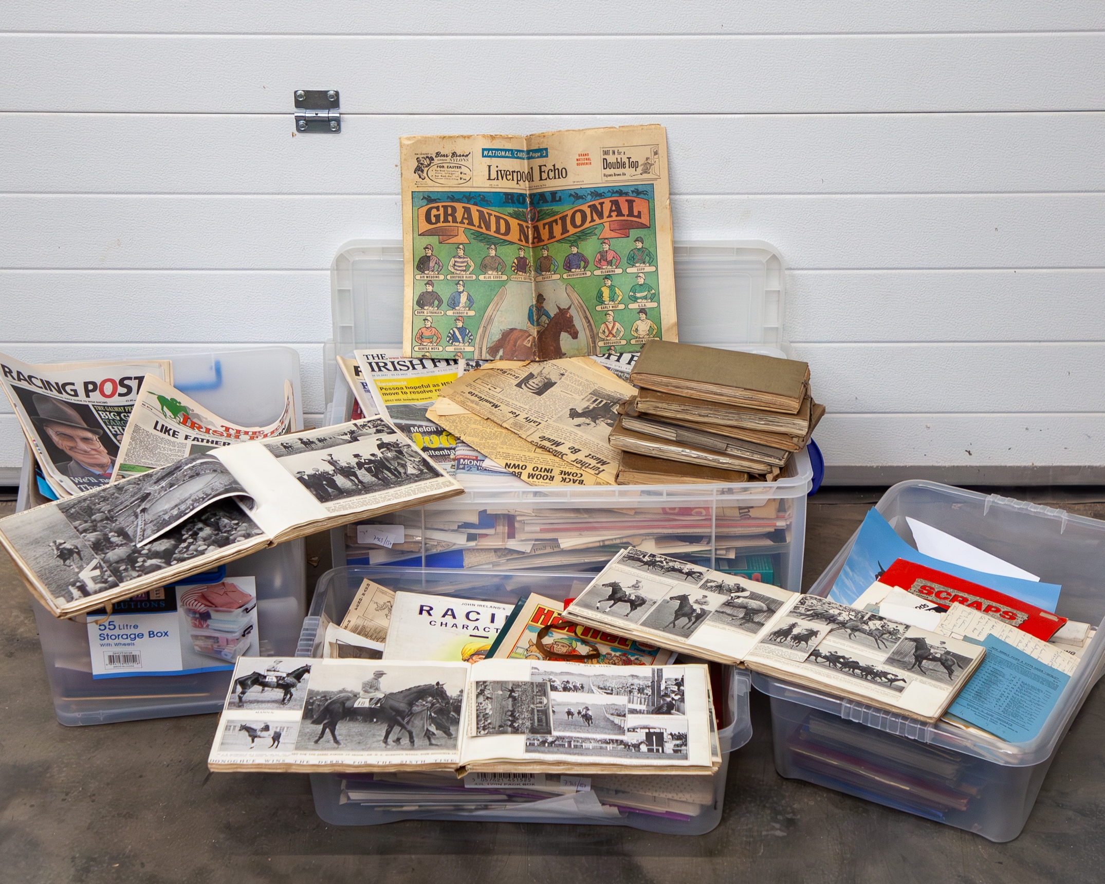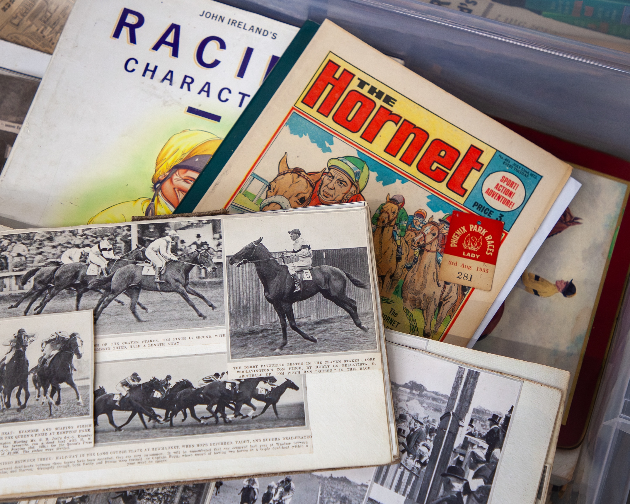 newspapers & cuttings, scrapbooks, bloodstock catalogues, racing annuals, magazines and a variety of other paper ephemera; also table mats and other miscellaneous items