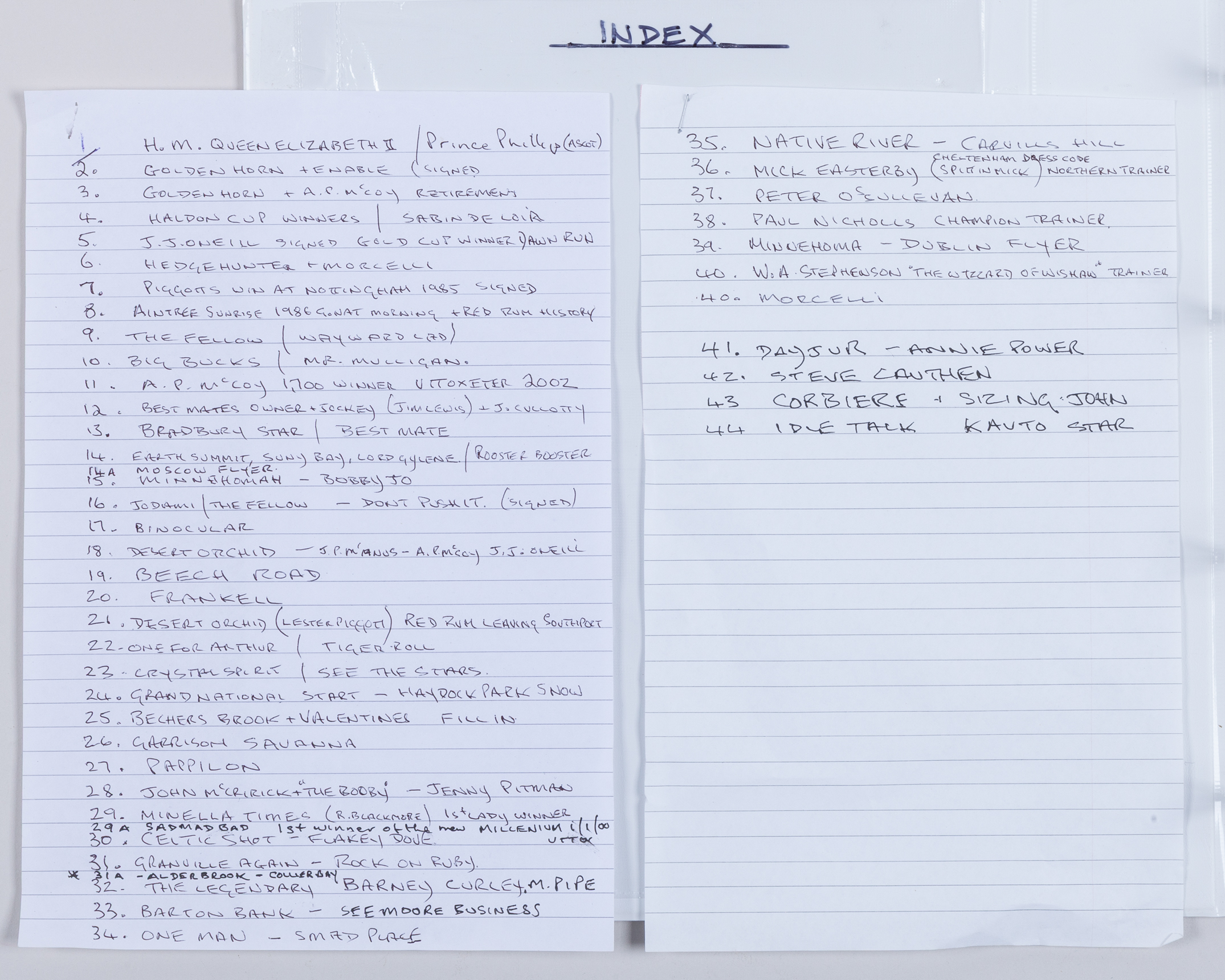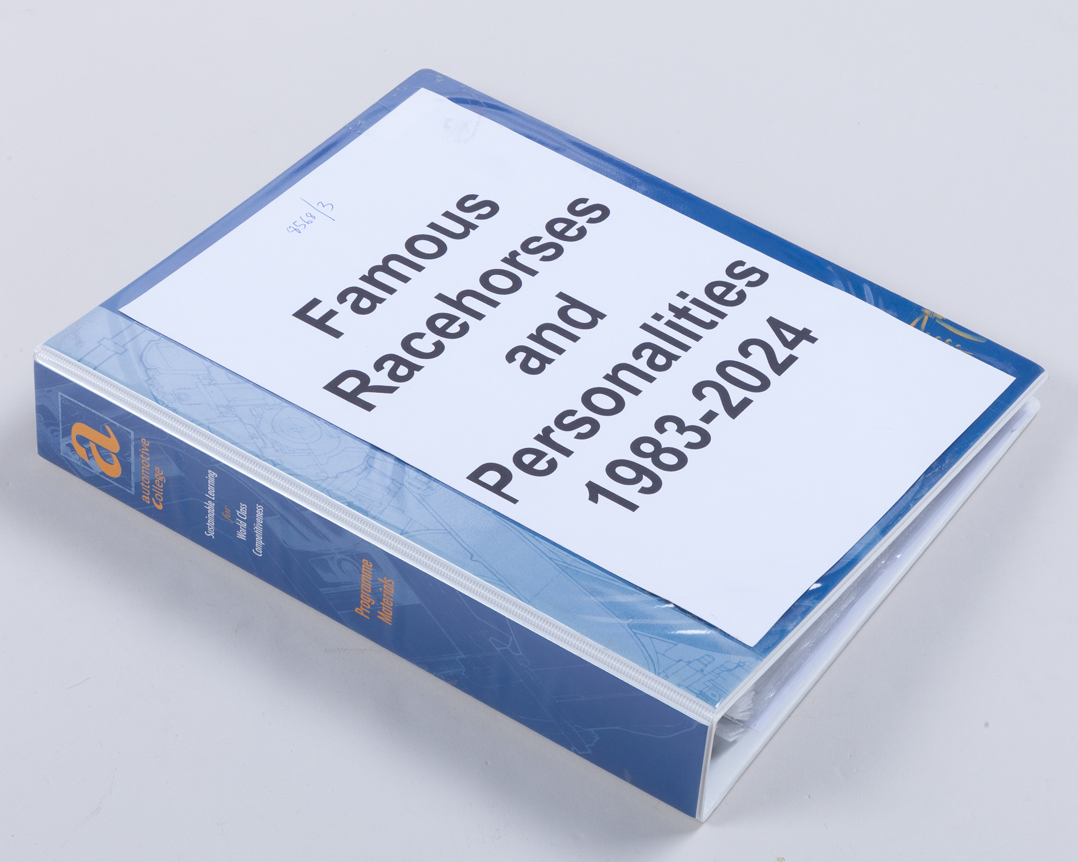 on 44 pages, featuring famous racehorses and Turf personalities 1983 to 2024, a full index of the content can be seen in the auction images, the album including some signed photos