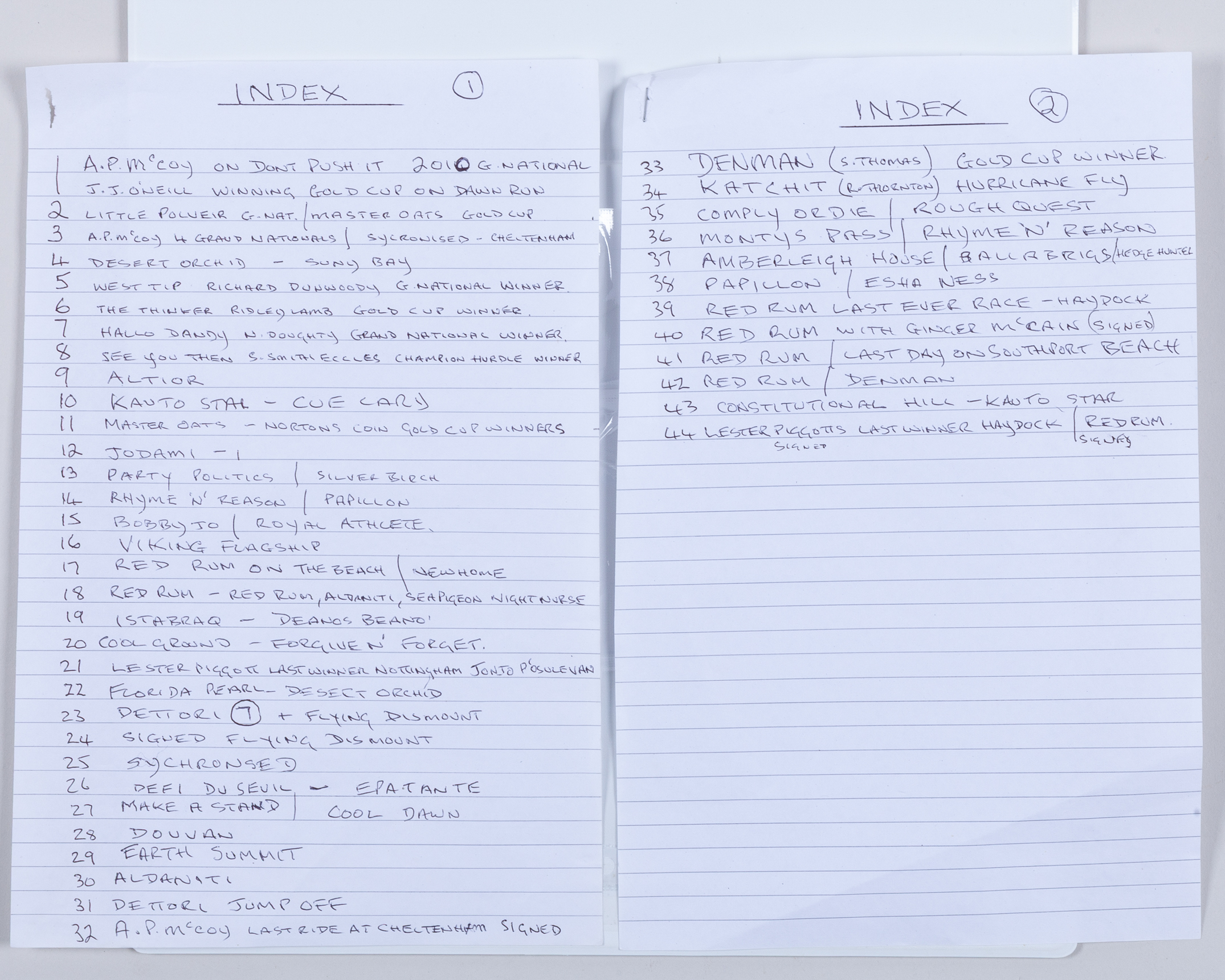 on 44 pages, featuring famous racehorses and Turf personalities 1983 to 2024, a full index of the content can be seen in the auction images, the album including some signed examples