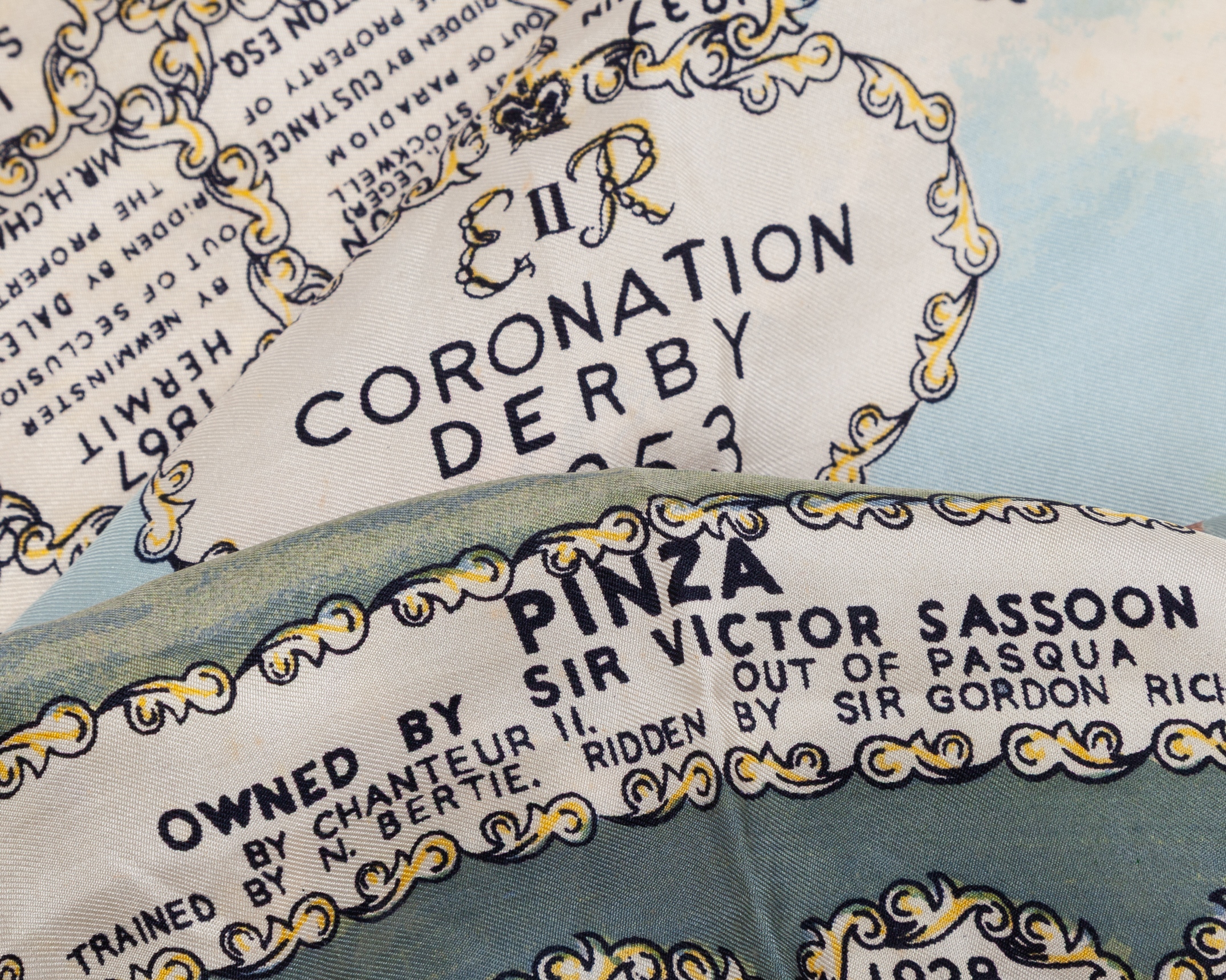 Ladies silk scarf commemorating the victory of Pinza in the 1953 ‘Coronation’ Derby,