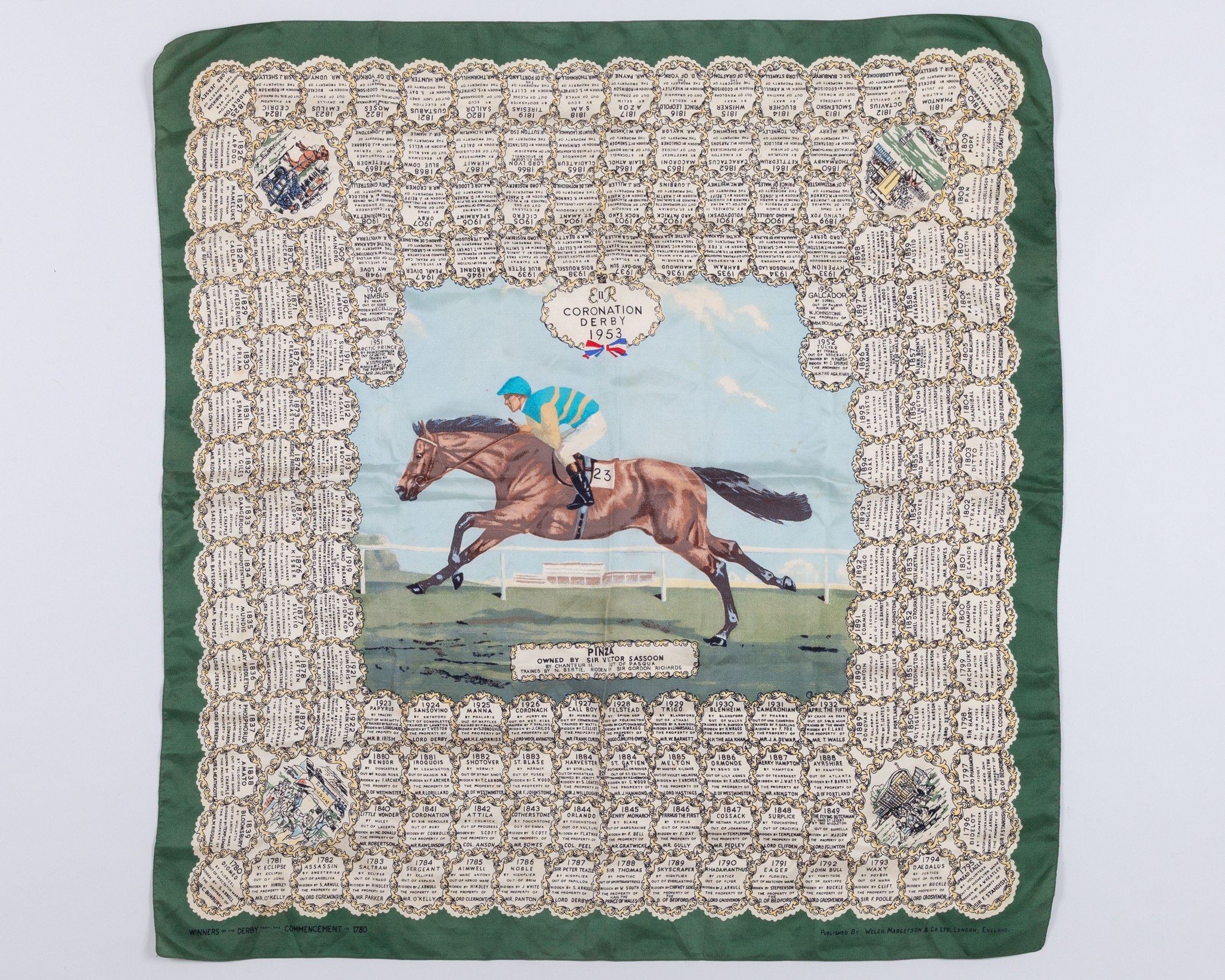 Ladies silk scarf commemorating Pinza's win in the 1953 ‘Coronation’ Derby