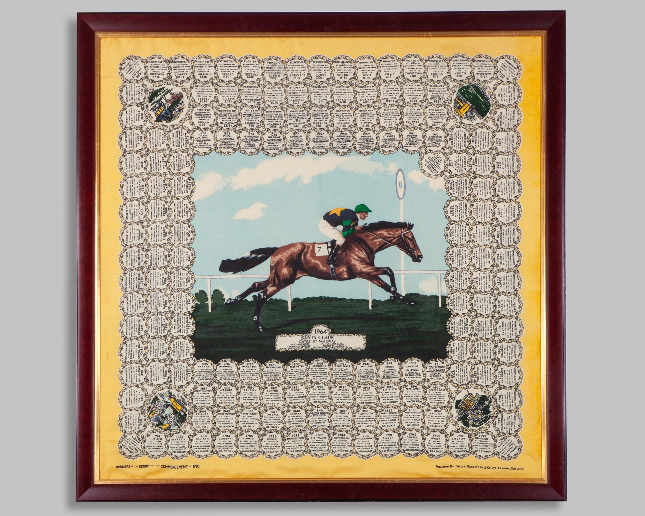 Ladies silk scarf commemorating Santa Claus winning the 1964 Epsom Derby