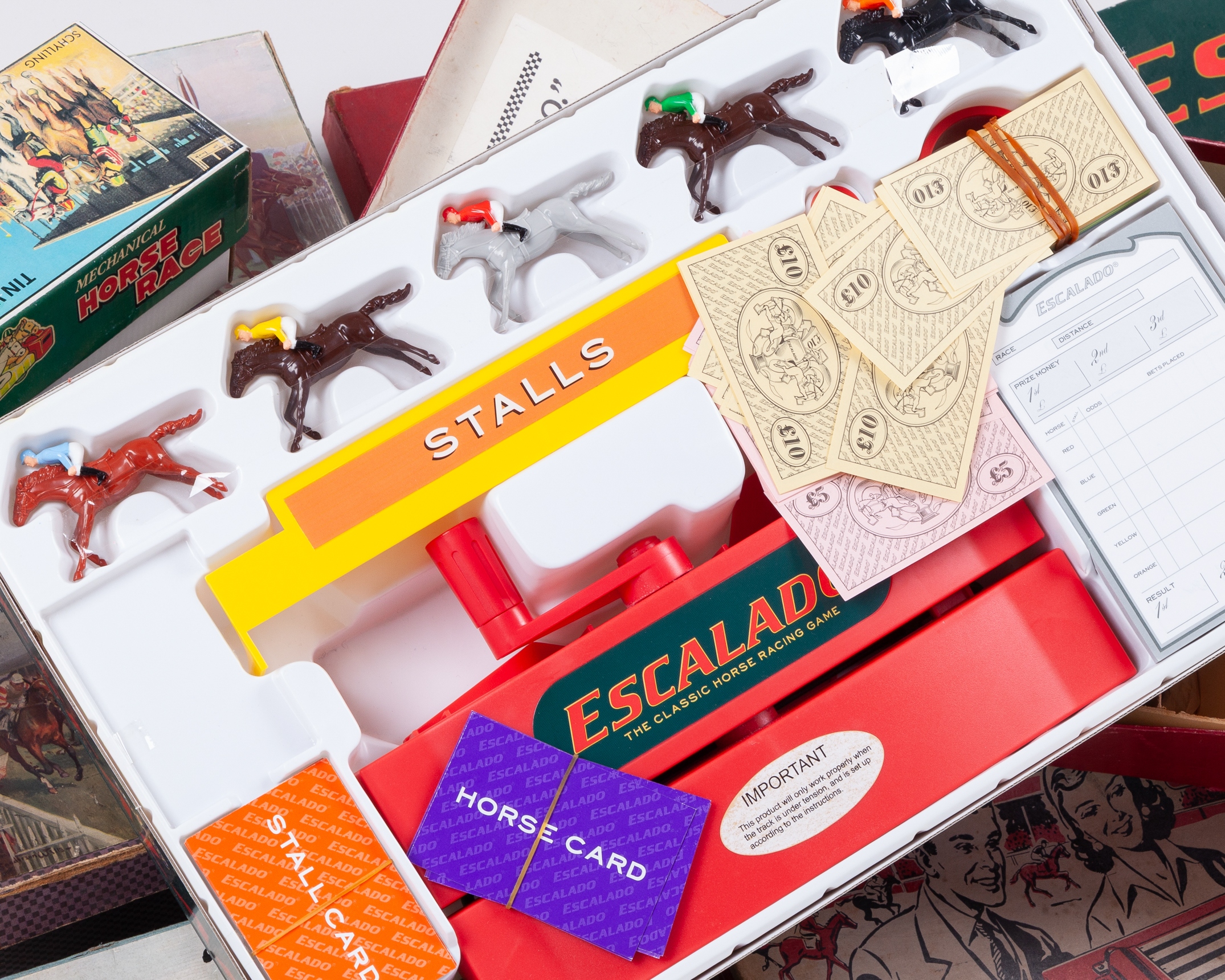 six versions of Escalado produced over different periods of the games's production; Merit Derby; Neck and Neck by Spears; and Wind Up Horse Race by Schylling