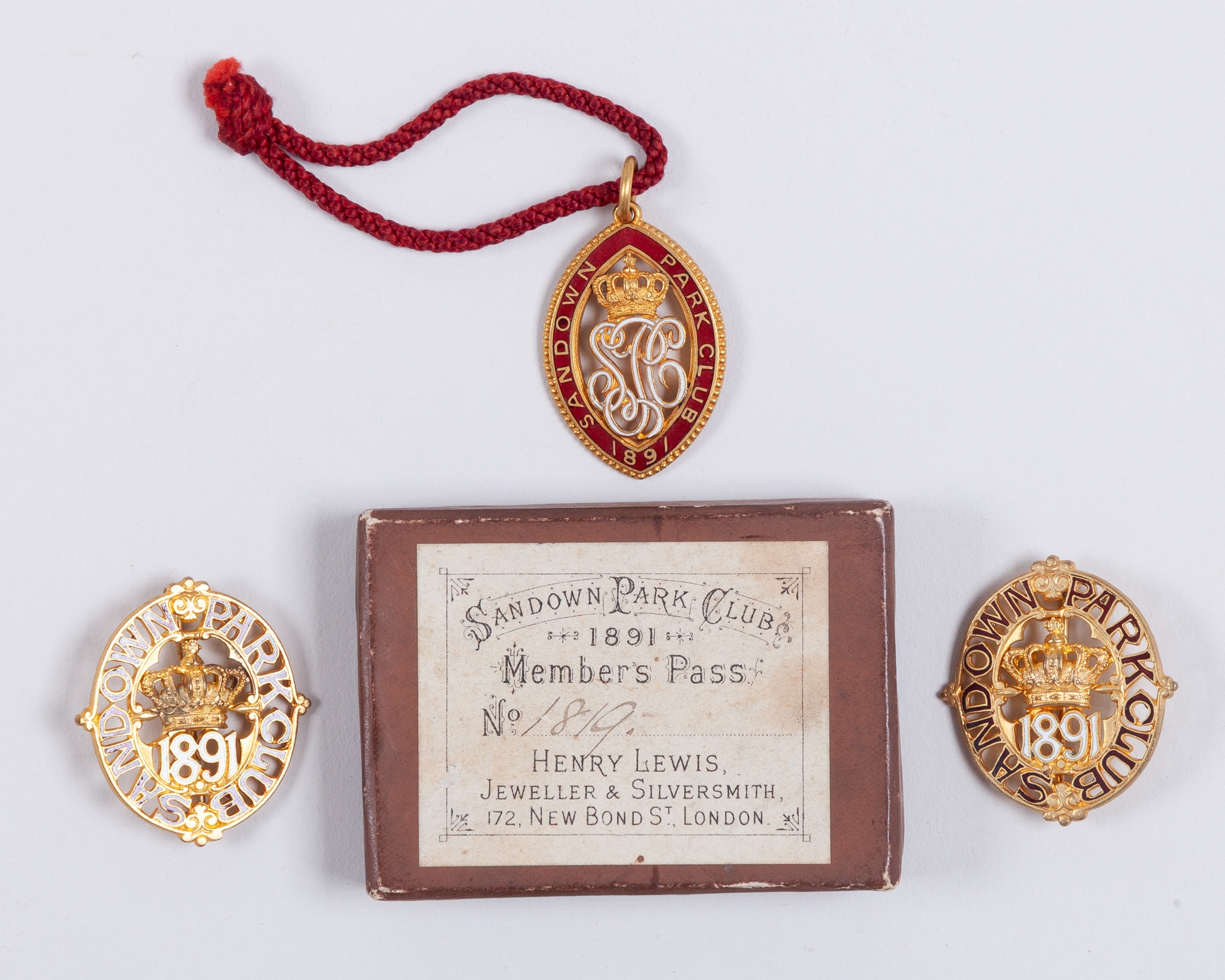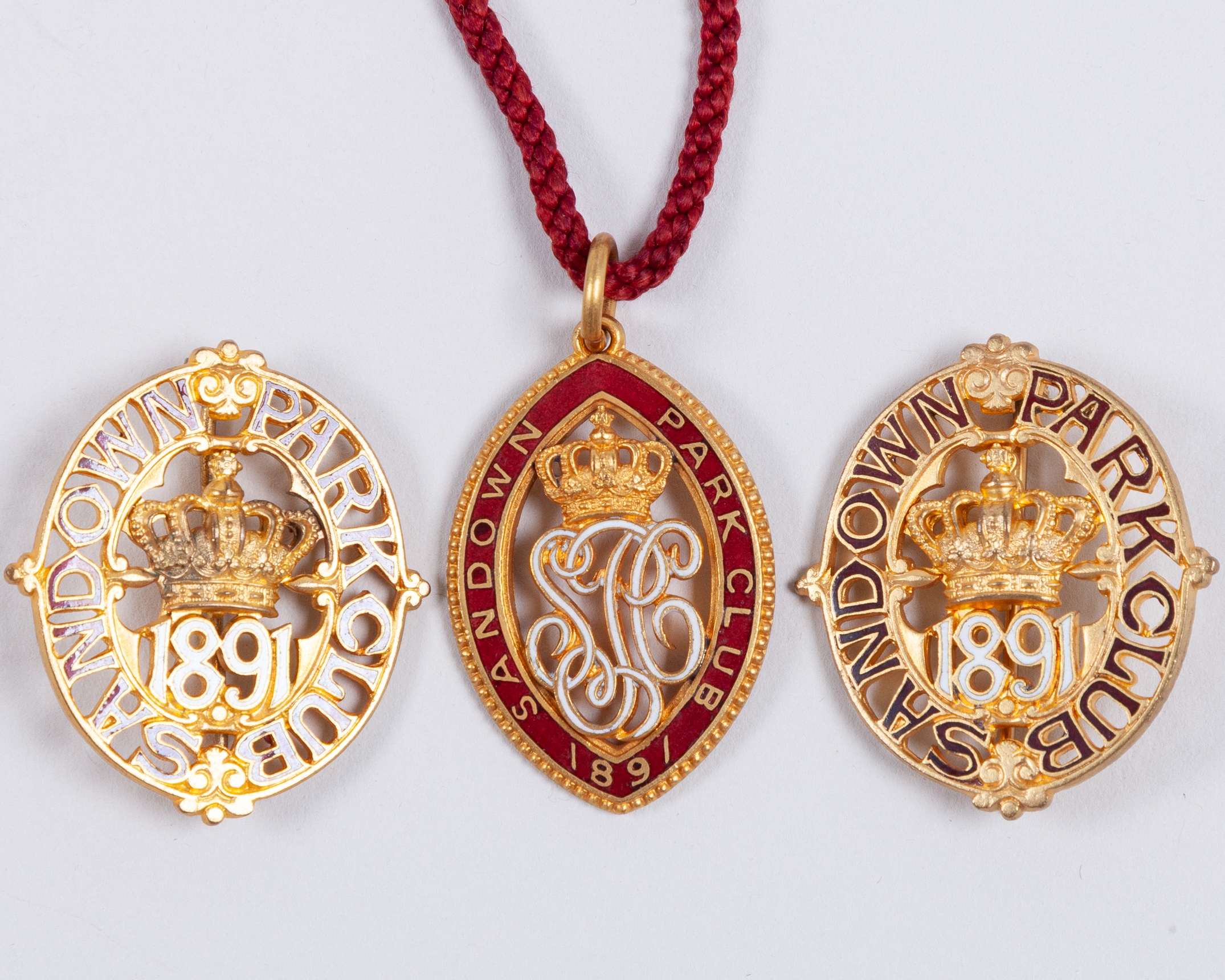 Trio of Sandown Park Racecourse members' badges for 1891,