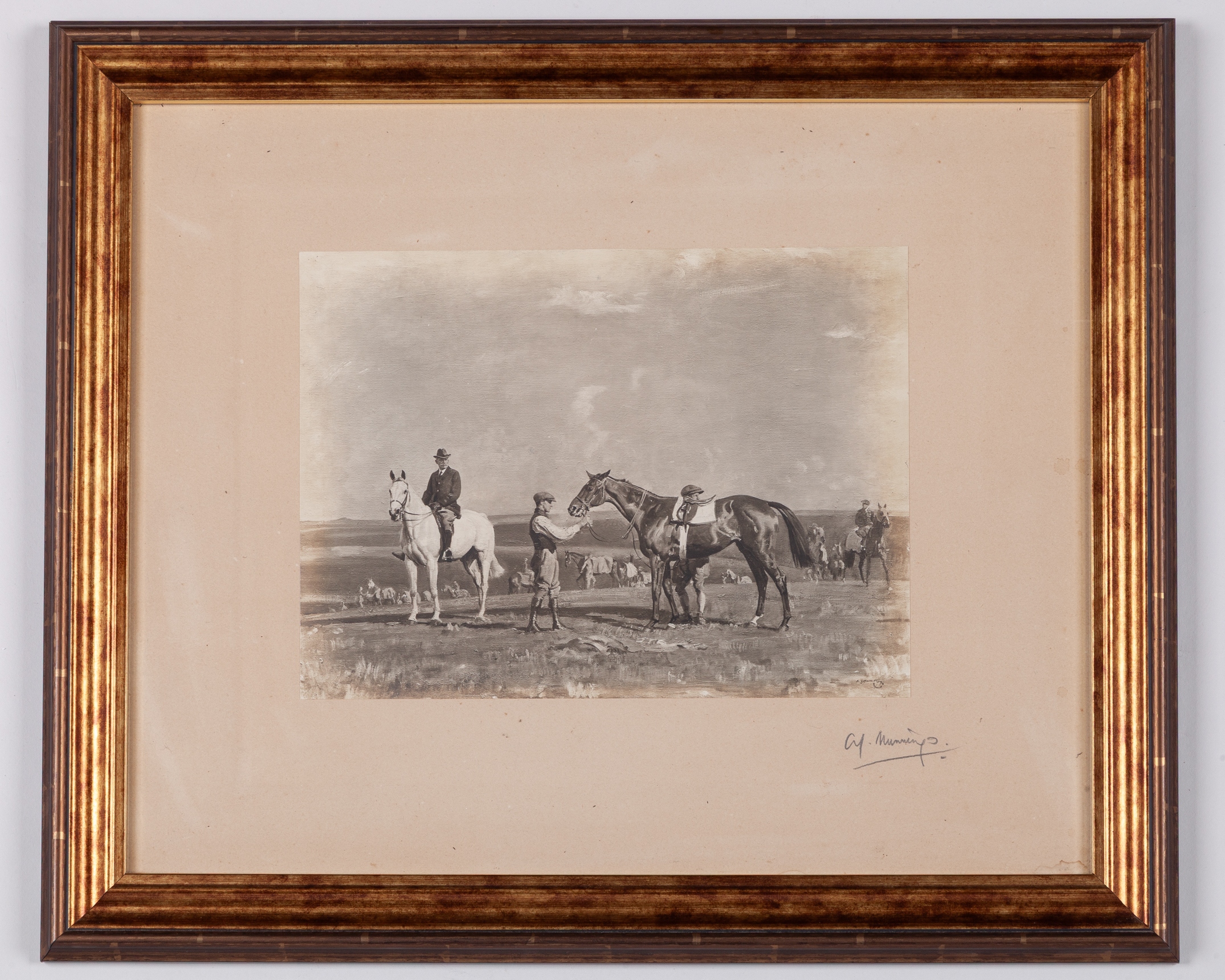 Sir Alfred Munnings (British, 1878-1959) signed print of the racehorse Saucy Sue at Manton