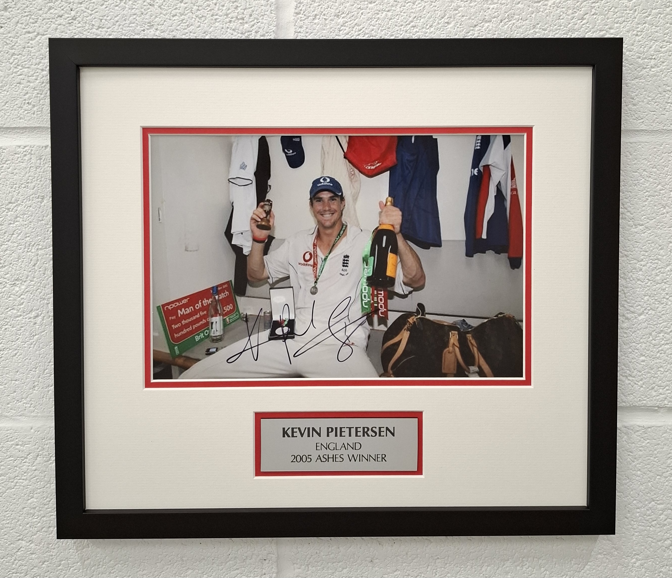 Relive the drama and excitement of one of cricket’s most celebrated series with this official signed 15 x 17in. framed and glazed photograph of Kevin Pietersen in the England changing room during the legendary 2005 Ashes.