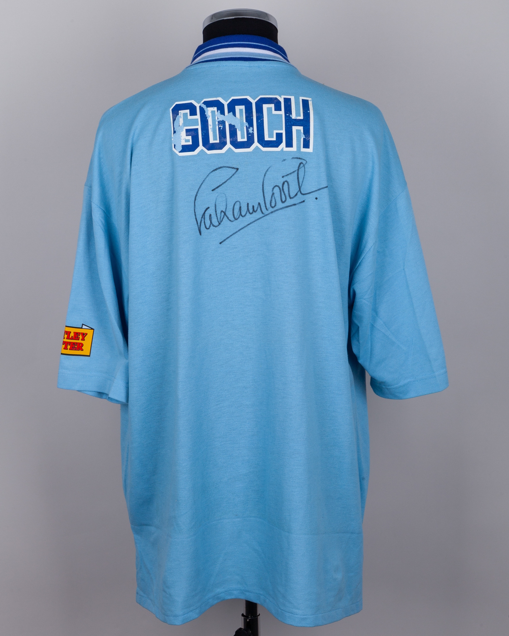 Graham Gooch match worn, signed light blue England 1990-91 World Series ODI shirt