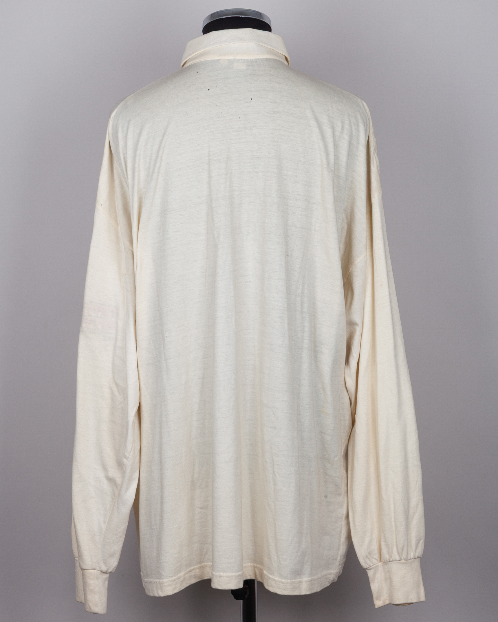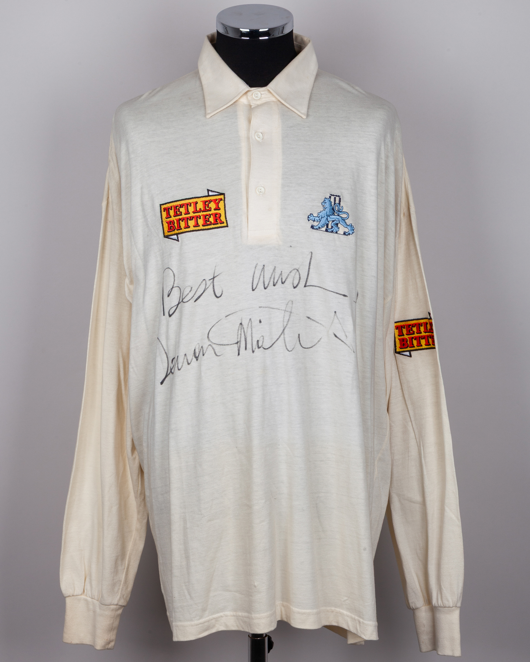 Devon Malcolm match worn, signed white England Test Match long-sleeved shirt