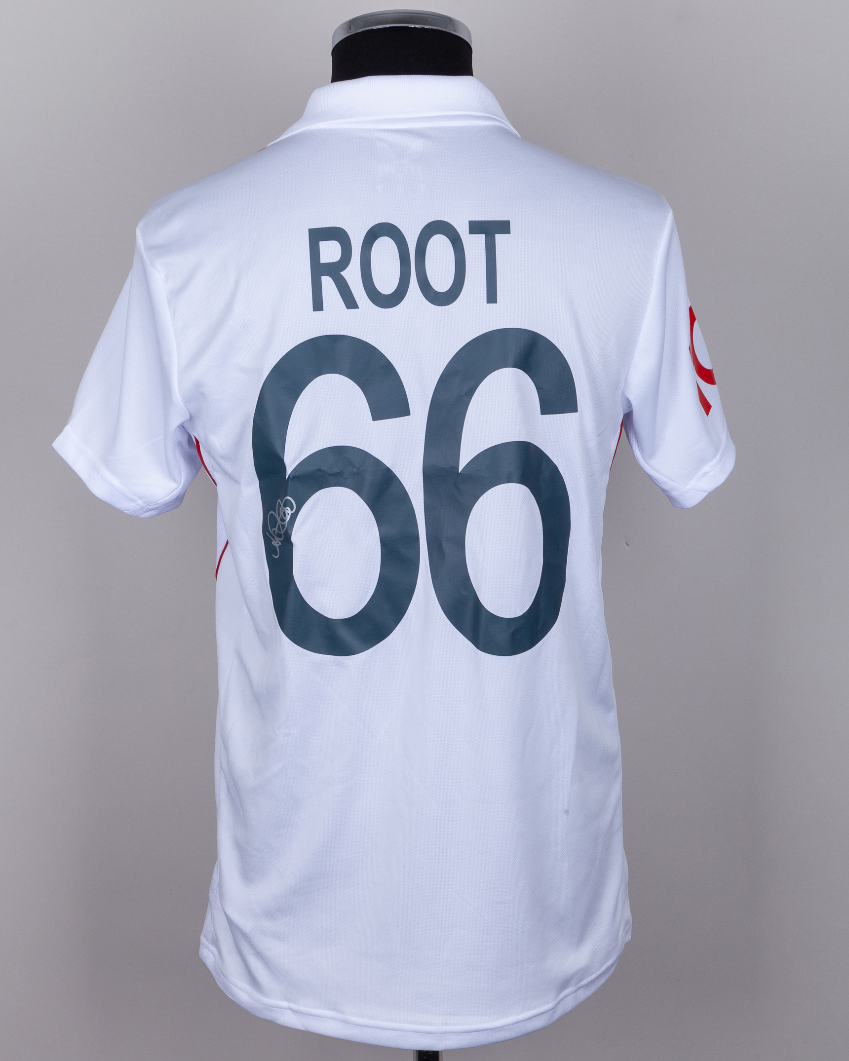 A modern great and one of England’s most prolific run-scorers, Root’s signature transforms this pristine shirt into a truly remarkable keepsake.