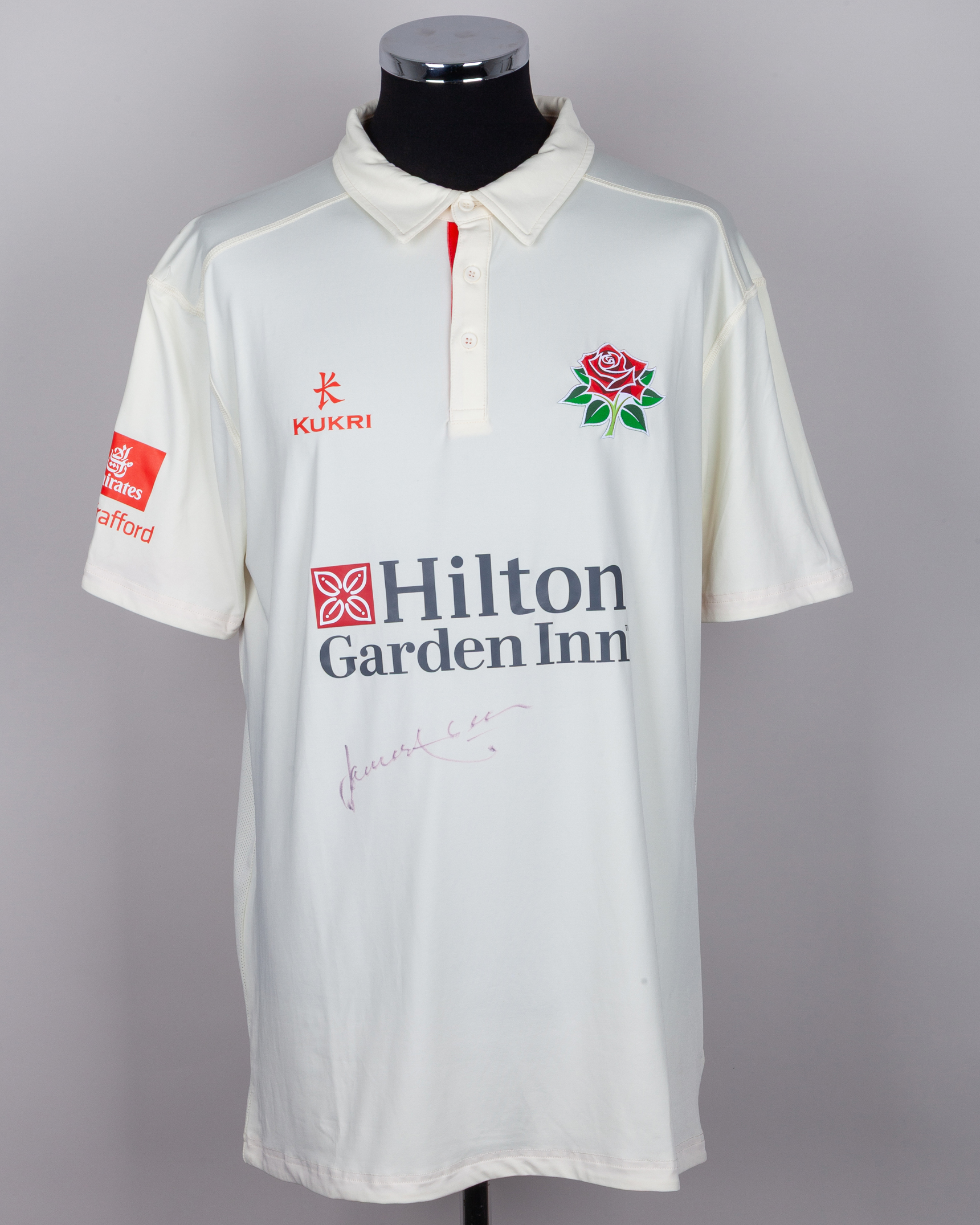 Own a piece of cricketing history with this Lancashire County Cricket Club Kukri XL cricket shirt, personally worn and hand-signed by England’s legendary fast bowler James Anderson.