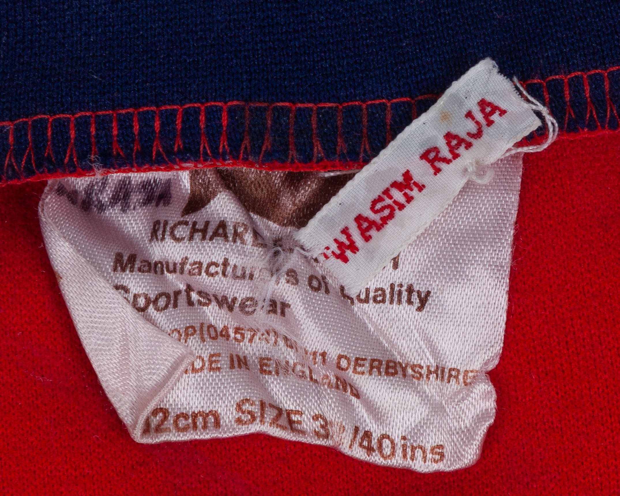 Wasim Raja player-issued Pakistan zip up red tracksuit hoodie, complete with his official name tag.