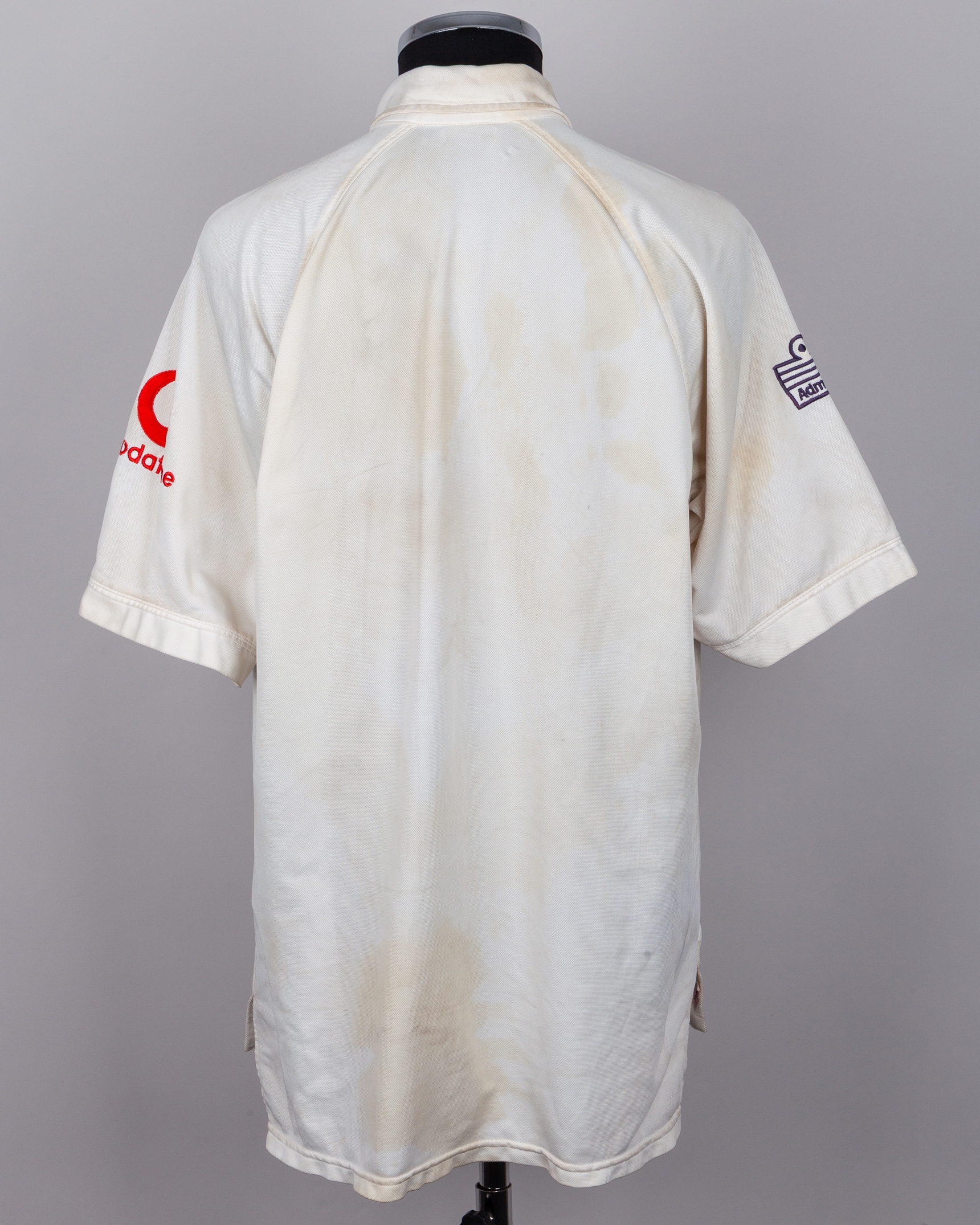 Nasser Hussain match worn signed white England tour of Sri Lanka 2003 Test Match short-sleeved shirt.