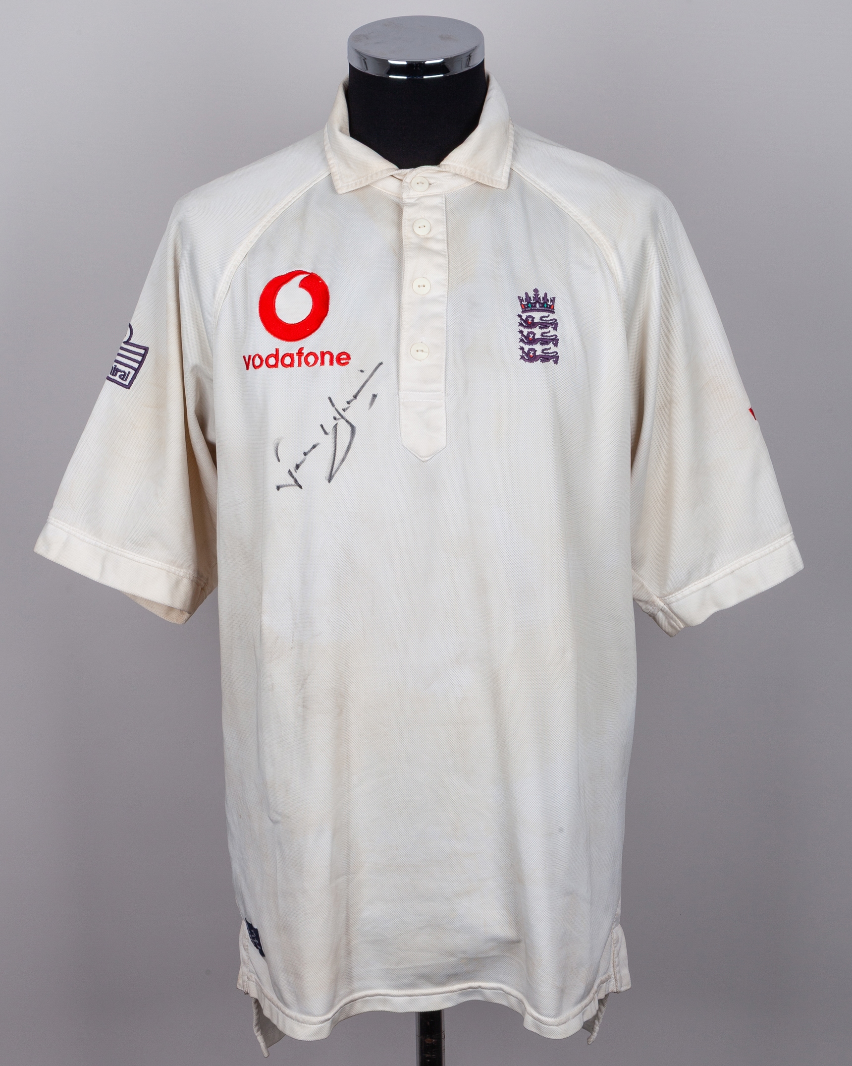 Nasser Hussain match worn signed white England tour of Sri Lanka 2003 Test Match shirt