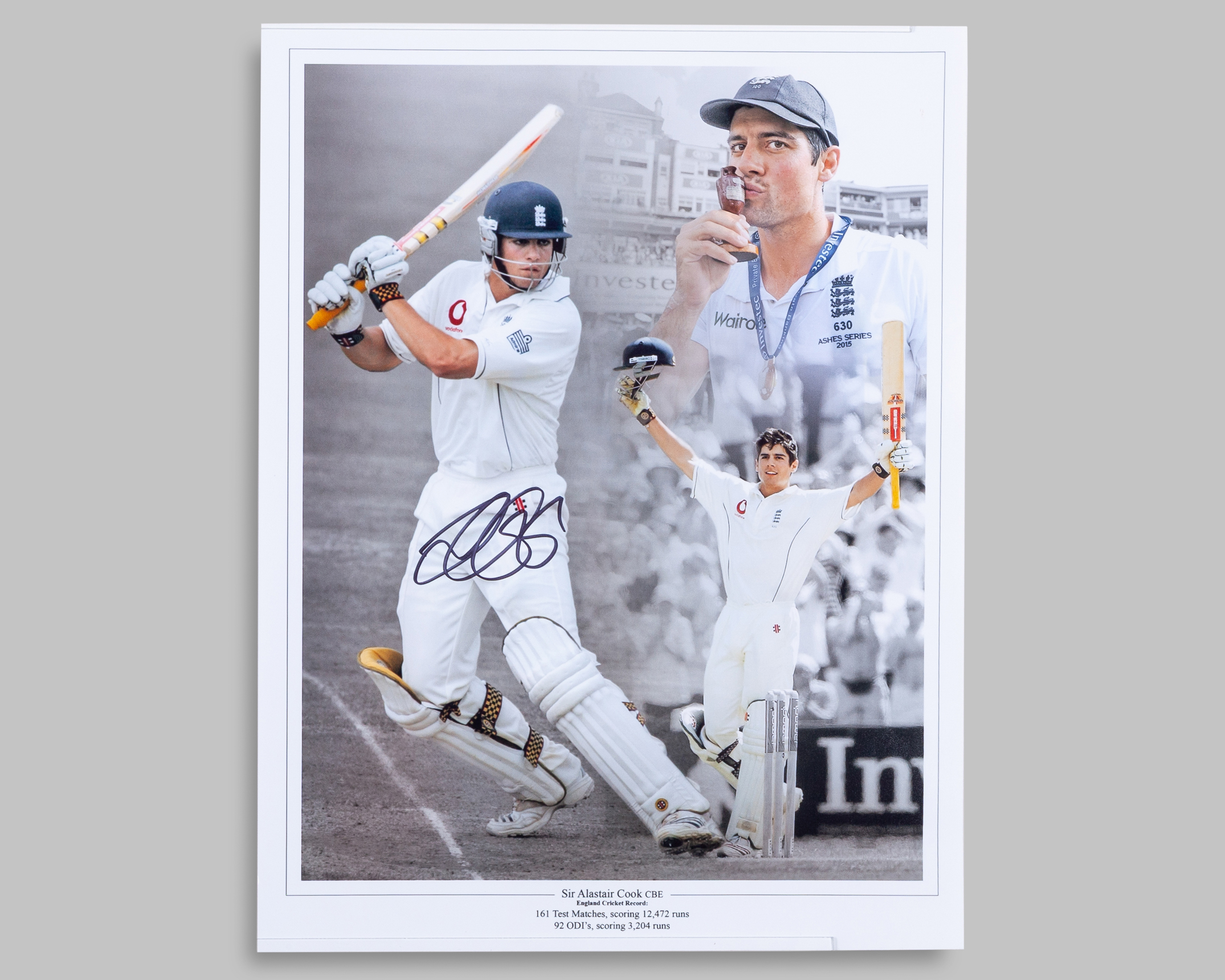 Celebrate the remarkable career of Sir Alastair Cook, previously England’s all-time leading Test run-scorer, with this officially signed photograph.