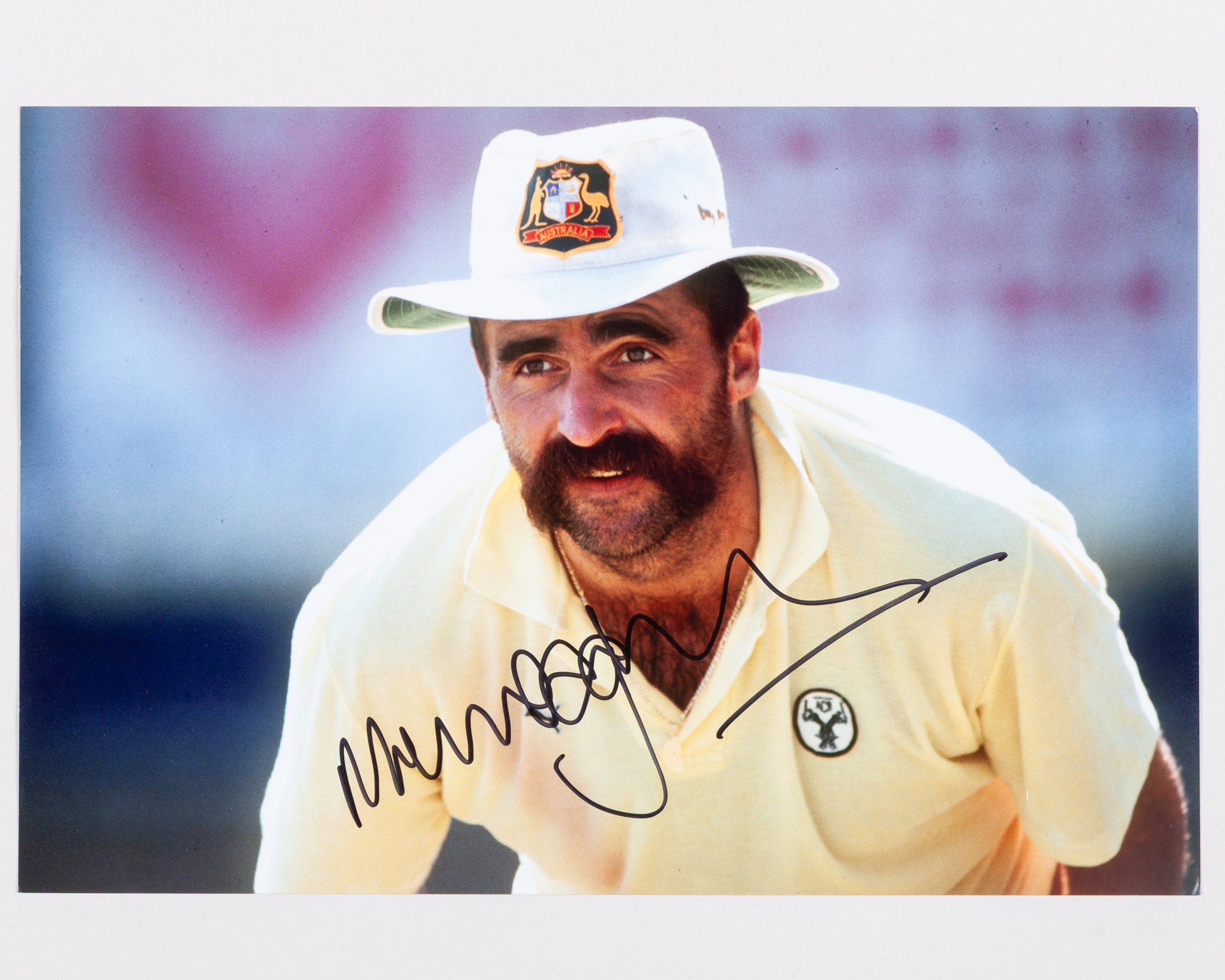 Own a unique piece of cricketing memorabilia with this 12 x 8in. photograph of Merv Hughes, personally signed by one of Australia’s most fearsome fast bowlers.
