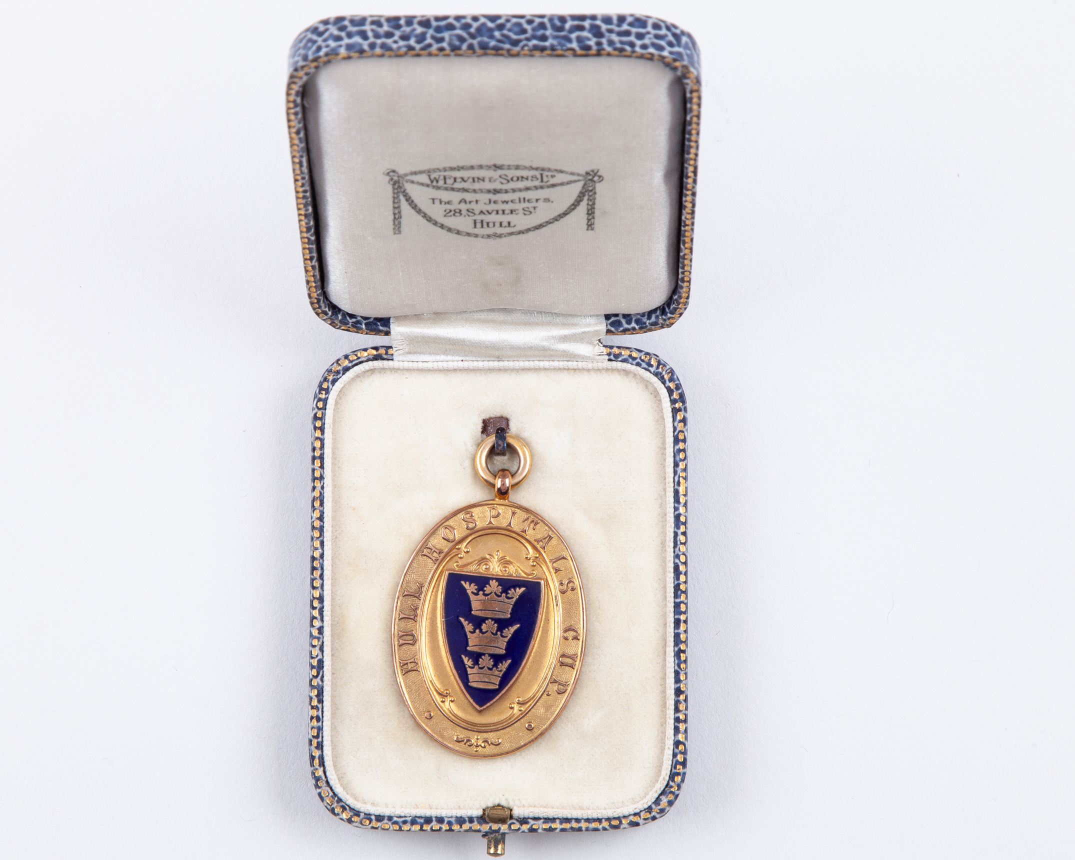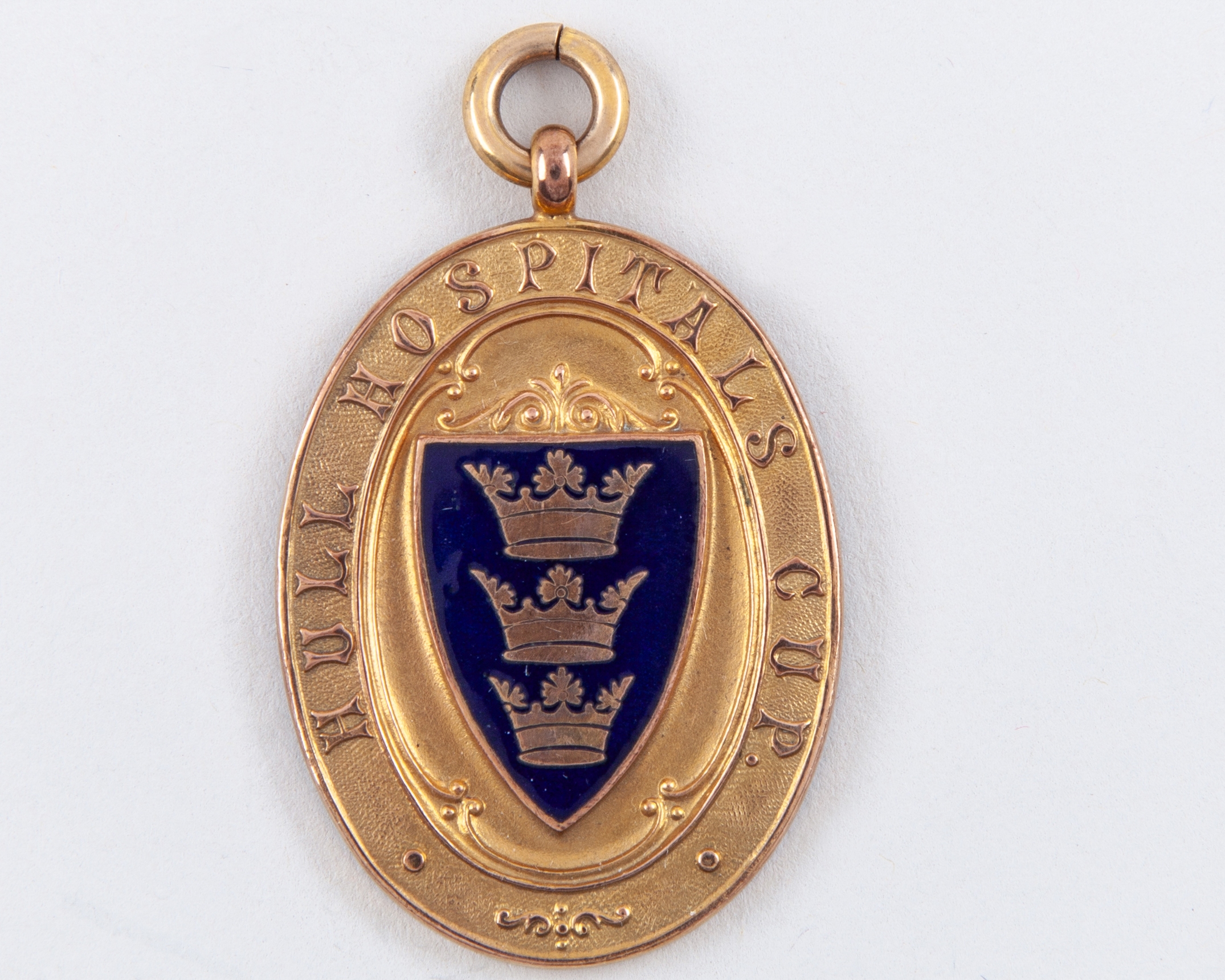 Willis Edwards 9ct gold and enamel Hull Hospitals Cup medal, 1929-30