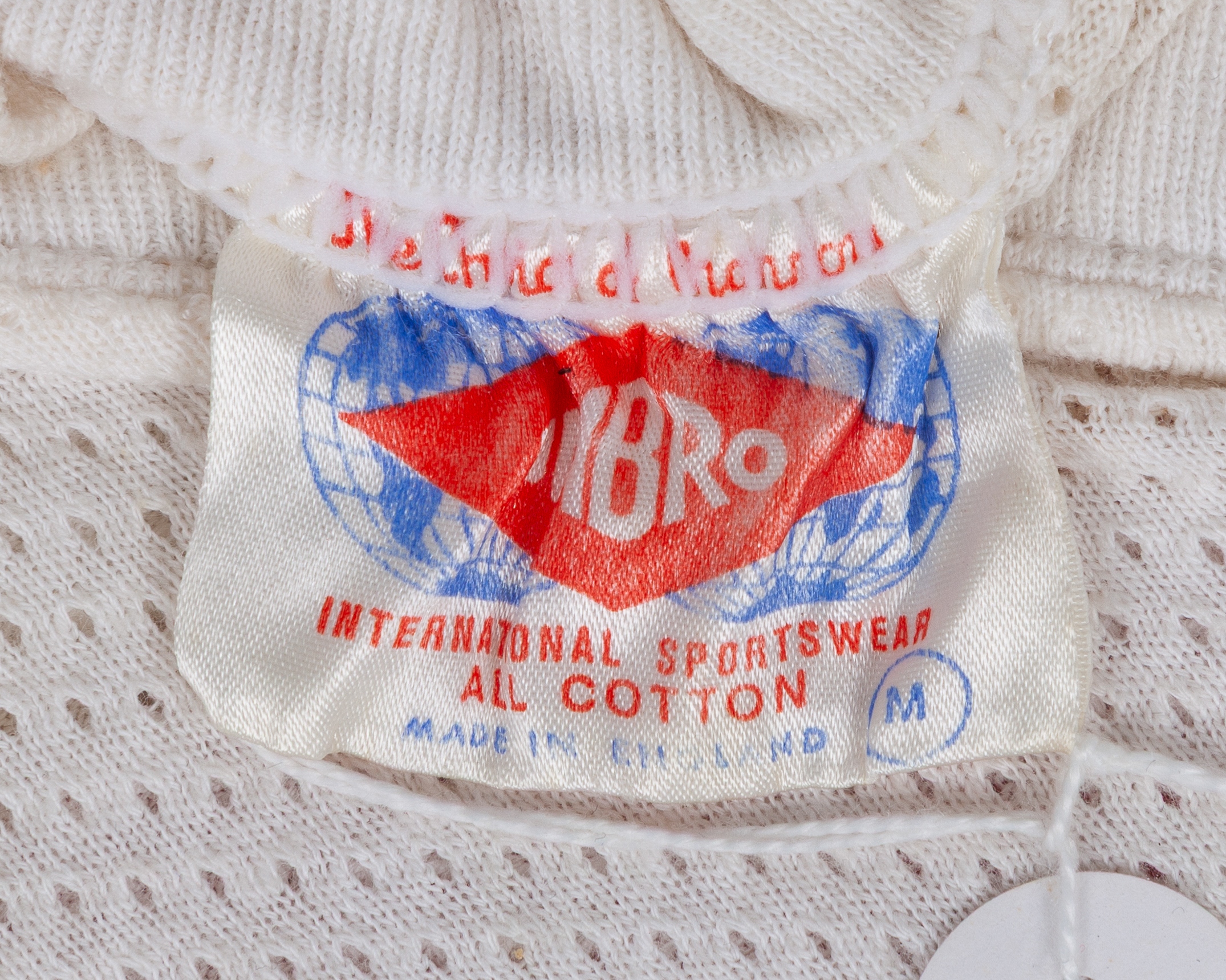 This airtex shirt was issued to Allan Clarke for the Tour of South America in 1969. Clarke played in one match on the tour, which was later declared unofficial. This was the game against Mexico on 4th June and Clarke netted a brace. These rare, airtex shirts were only worn by England players for a brief time and had been primarily developed to help players deal with the heat of Mexico in the 1970 World Cup. Clarke gave his shirt to Cyril Partridge, the Leeds United trainer, whose estate was sold at Sotheby's on 21st September 2001. This jersey was lot 183.