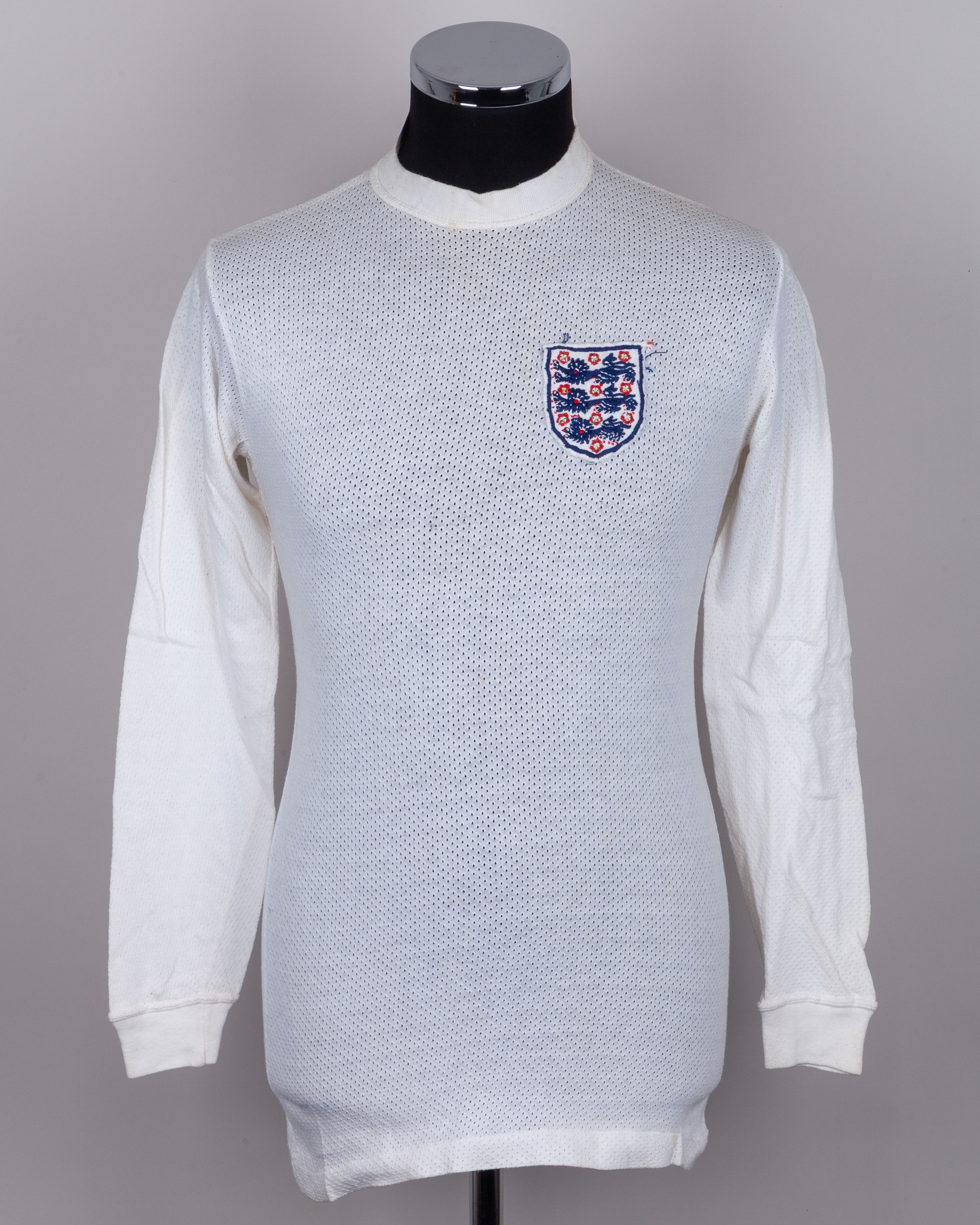 Allan Clarke a white No.15 airtex England long-sleeved shirt, 1969