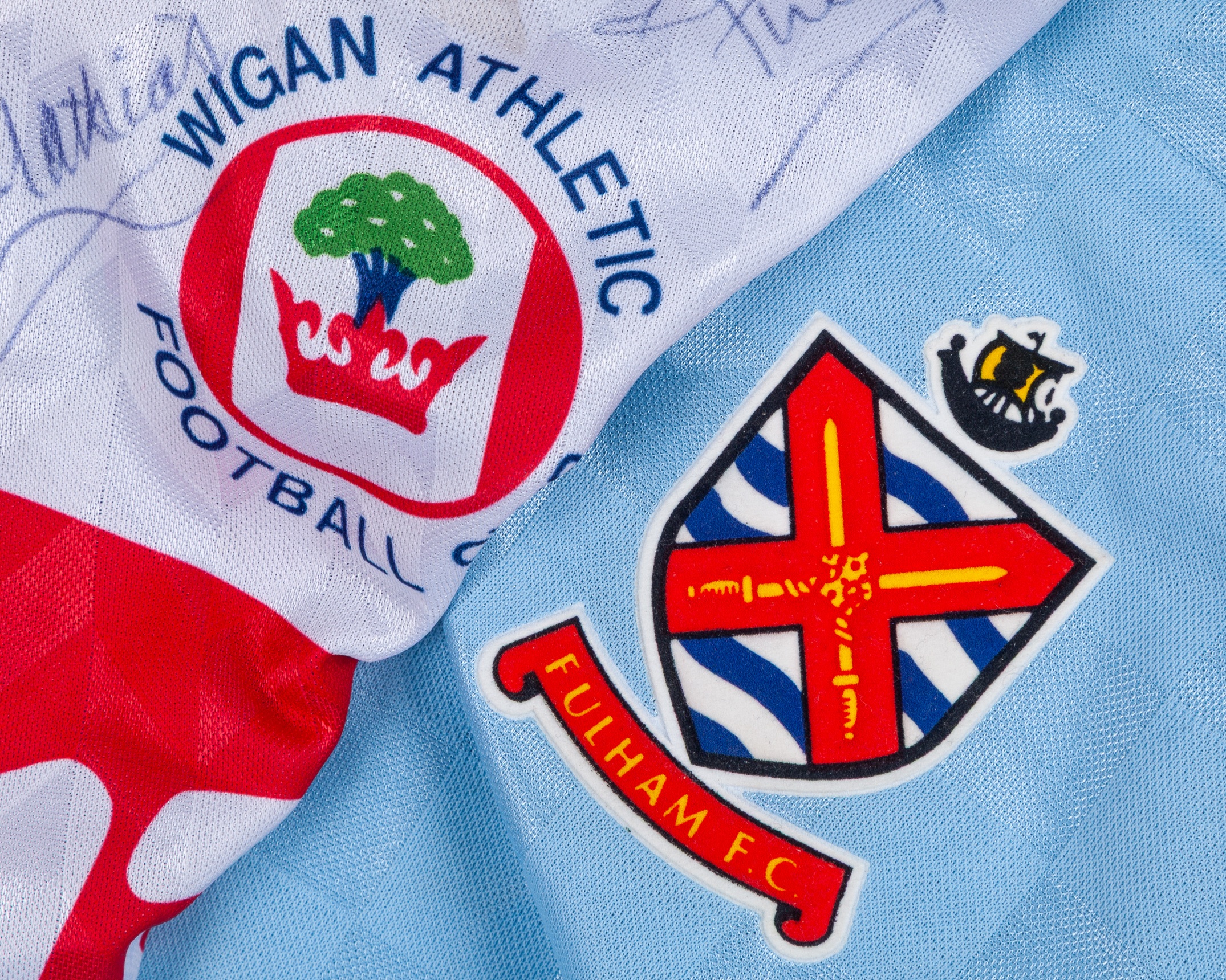 A Wigan Athletic autographed replica shirt. a Fulham autographed shirt and a Reading autographed replica shirt (3)