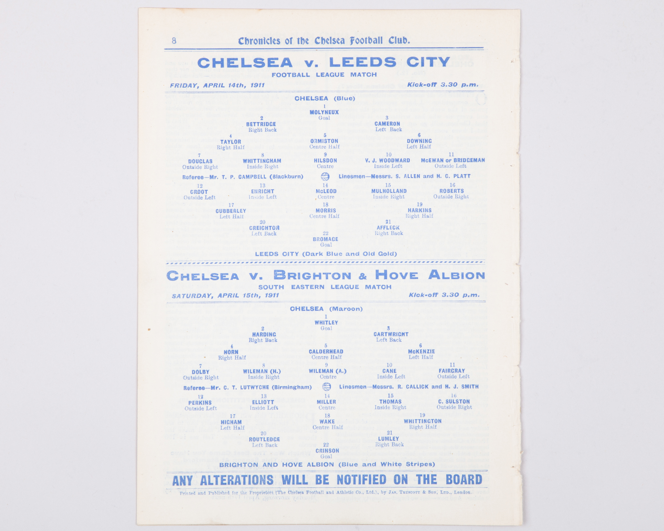 Chelsea v. Leeds City home match programme, 14th April 1911