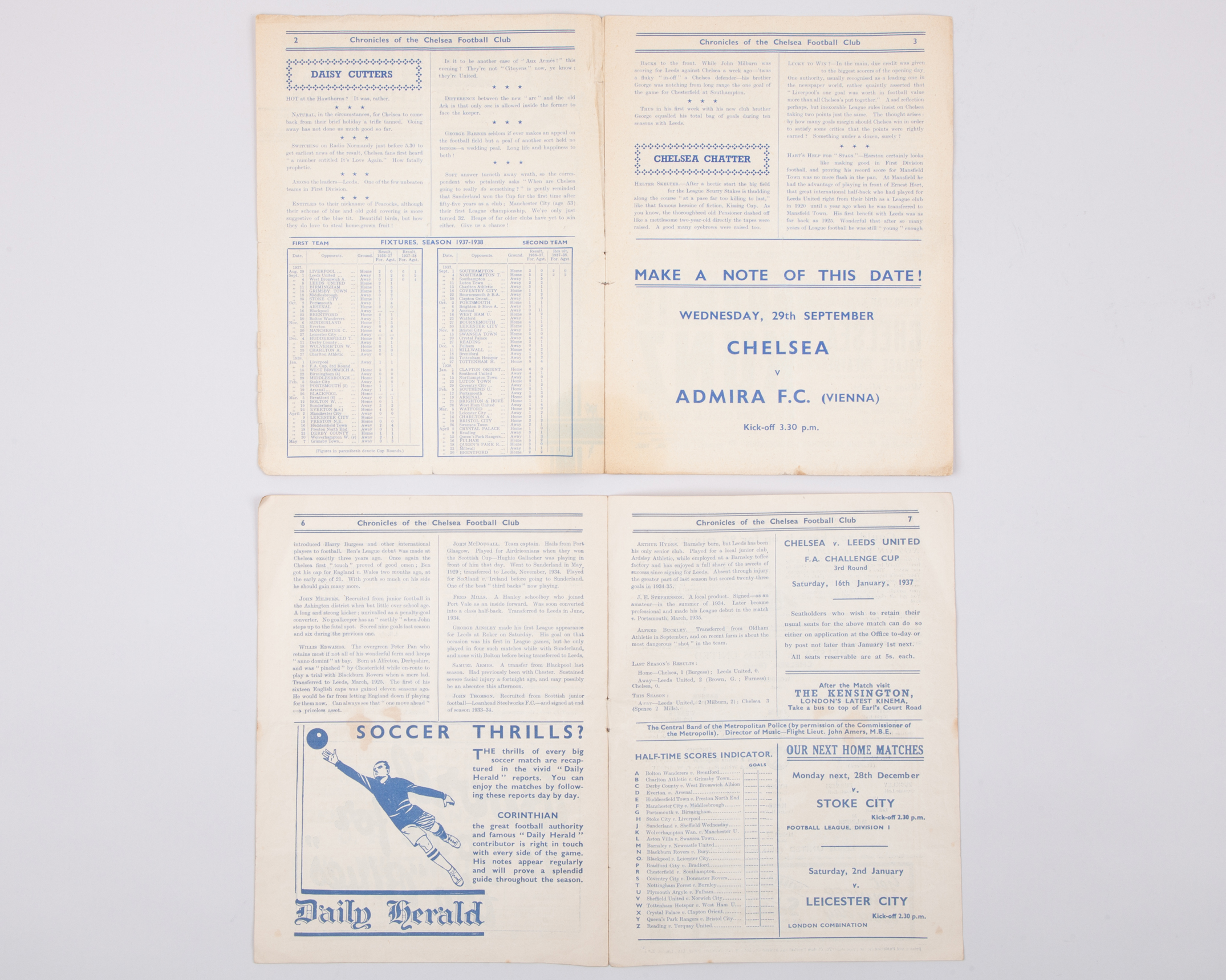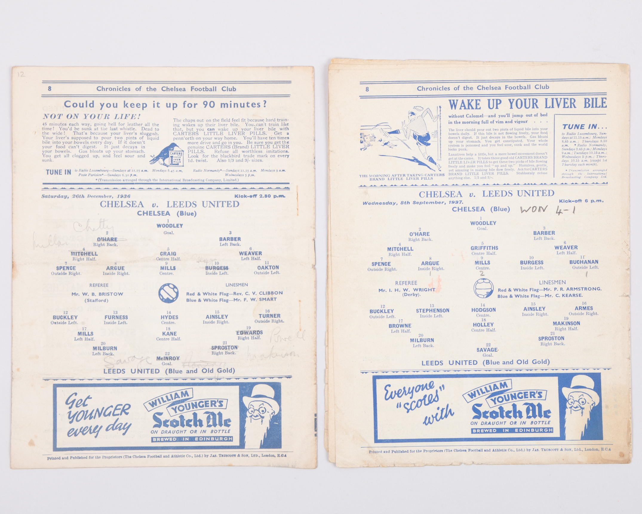 Two Chelsea v. Leeds United match programmes, 1936 and 1937