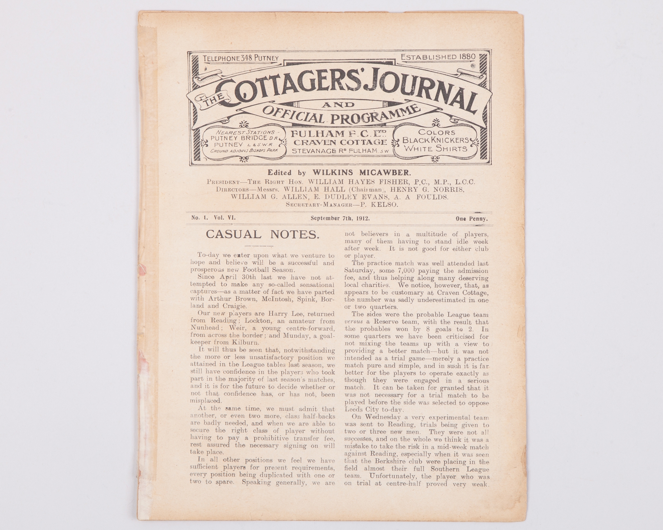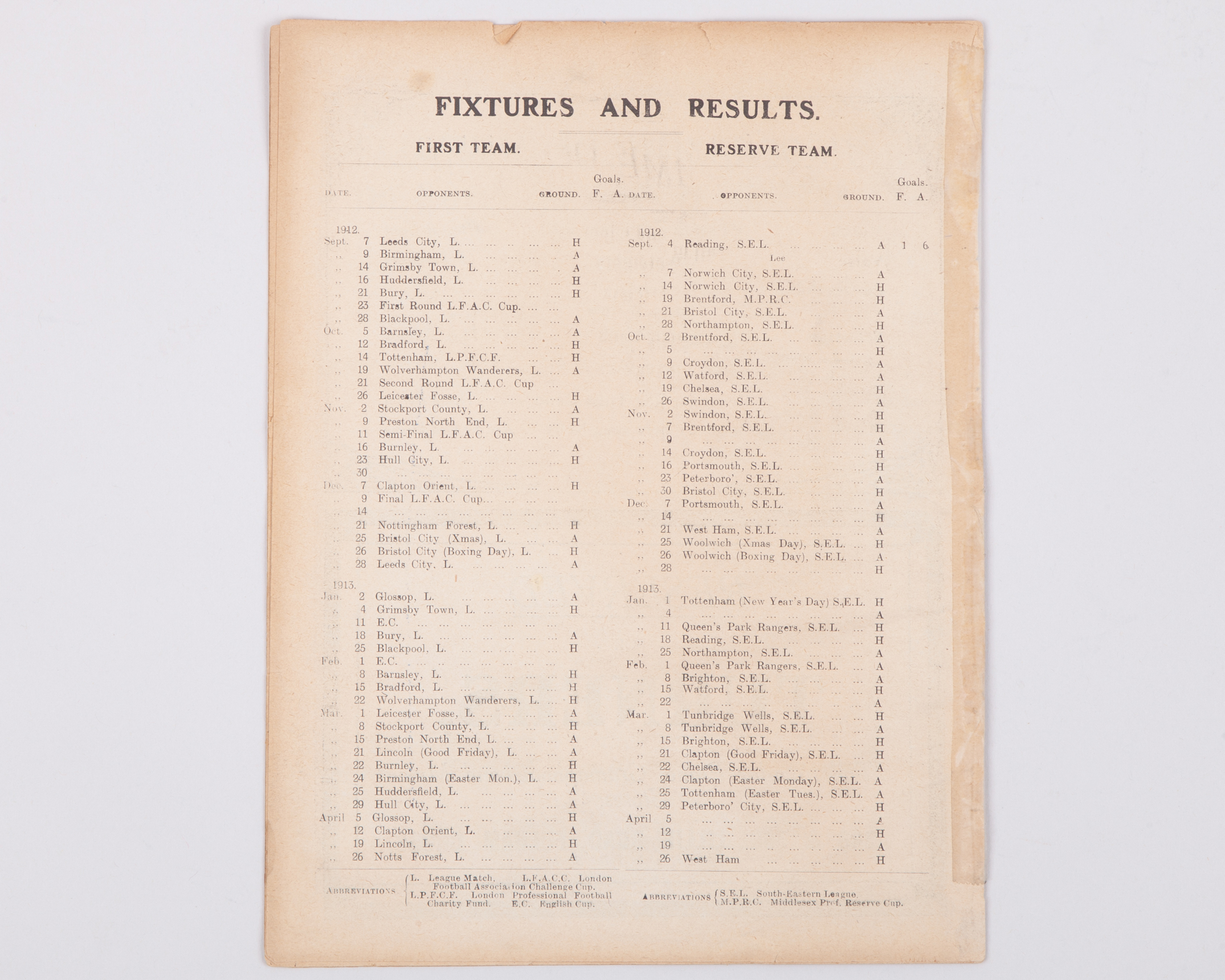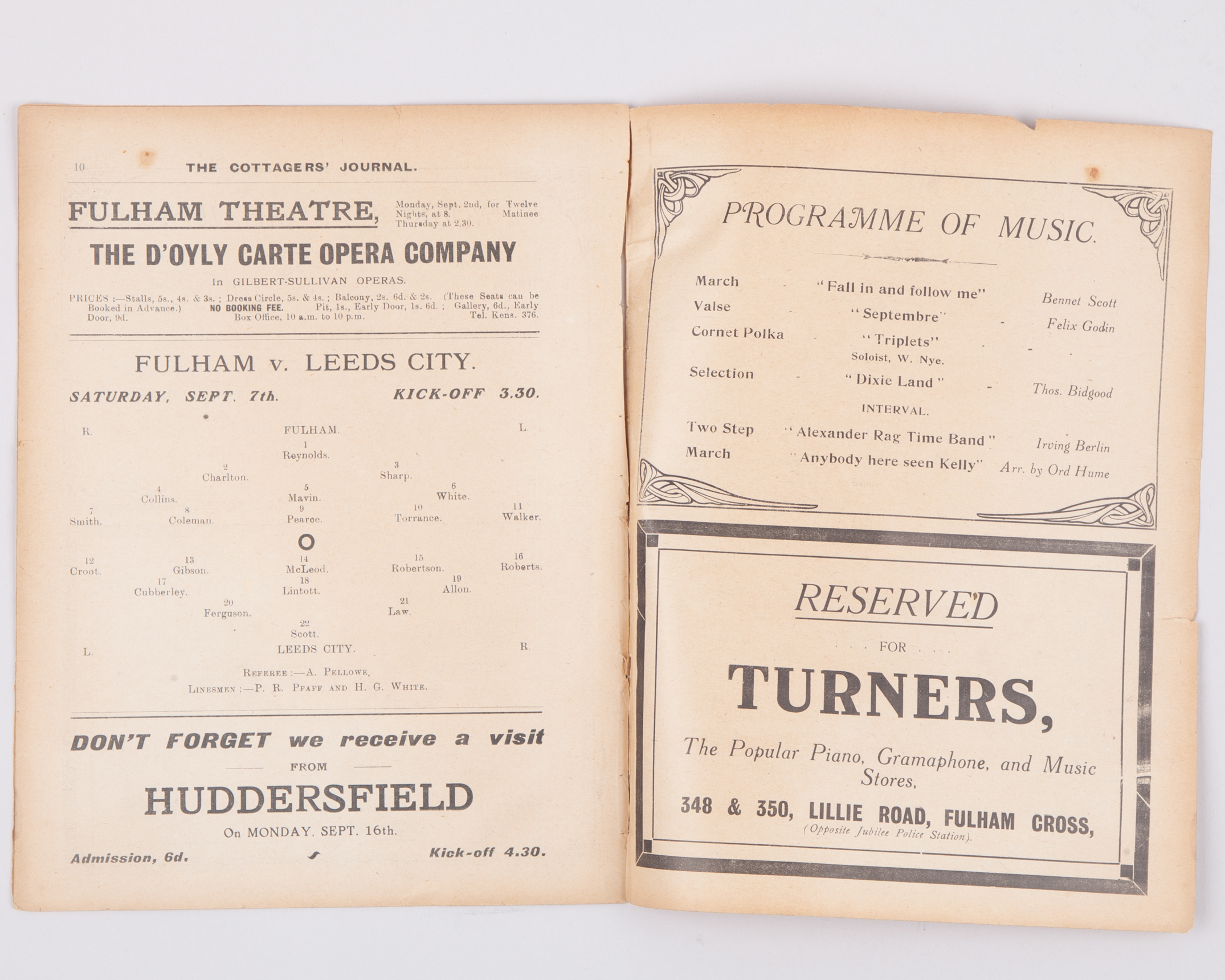 Fulham v. Leeds City match programme, 7th September 1912, ex bound volume, lacking cover, spine taped