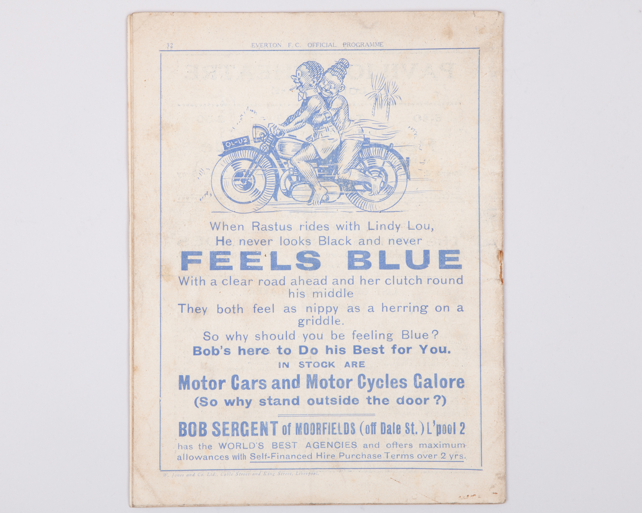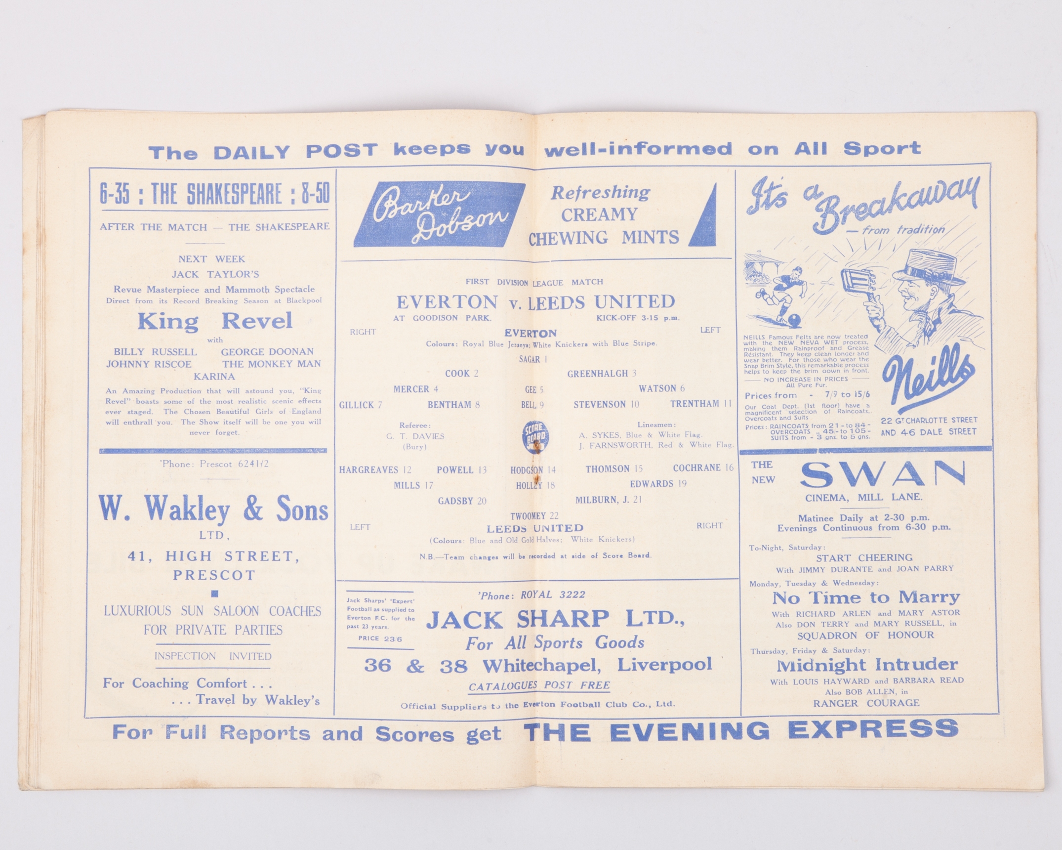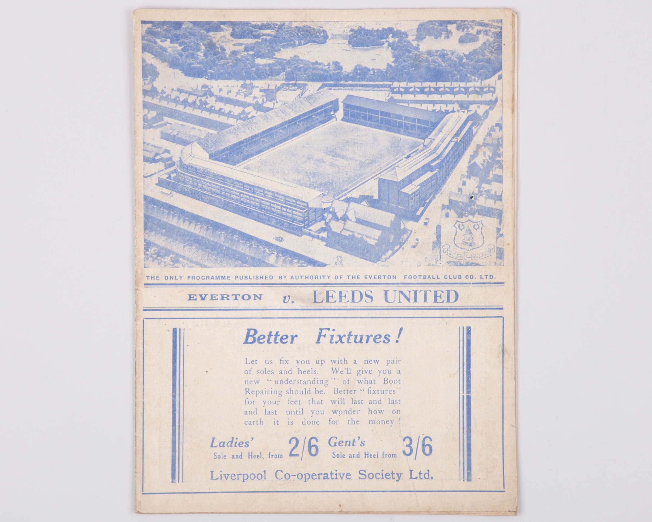Everton v. Leeds United match programme, 22nd October 1938, folds, staining, lacking staple