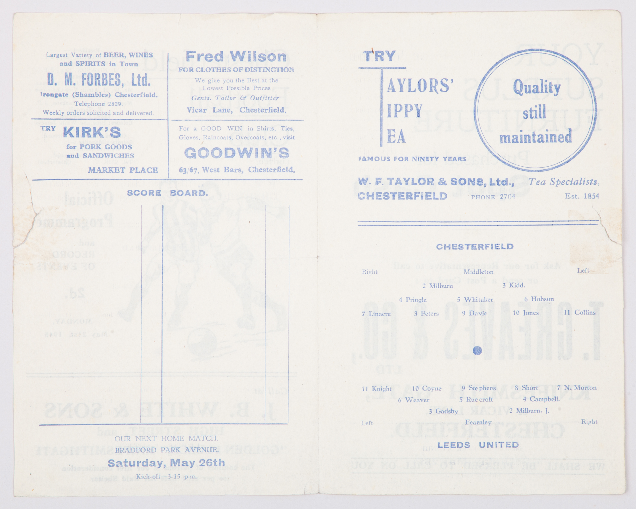 Chesterfield v. Leeds United match programme, 21st May 1945