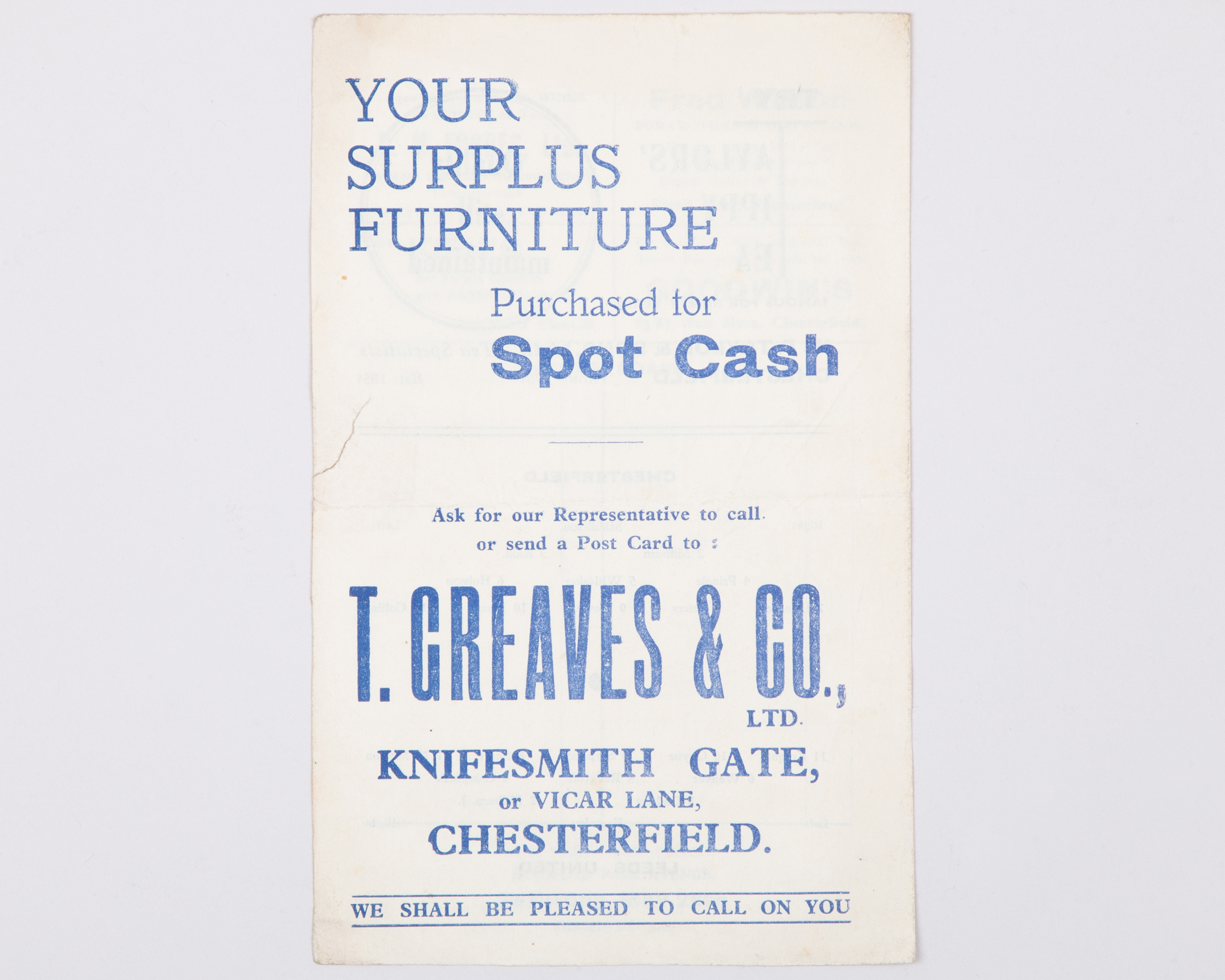 Chesterfield v. Leeds United match programme, 21st May 1945, folds, tear to covers