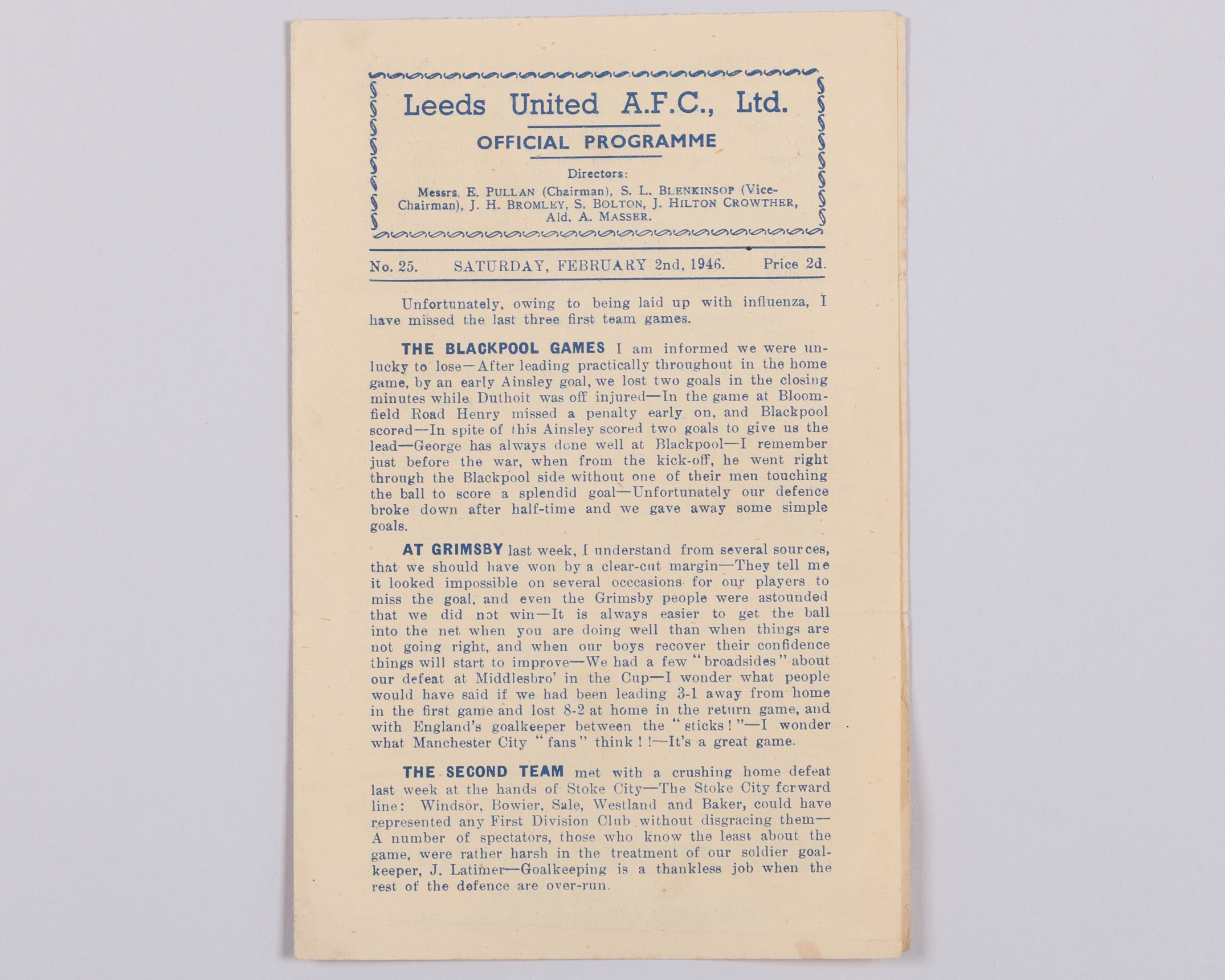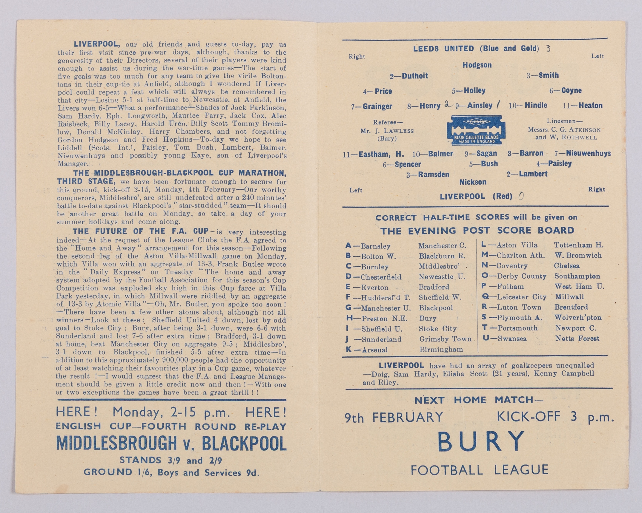 Leeds United v. Liverpool match programme, 2nd February 1946