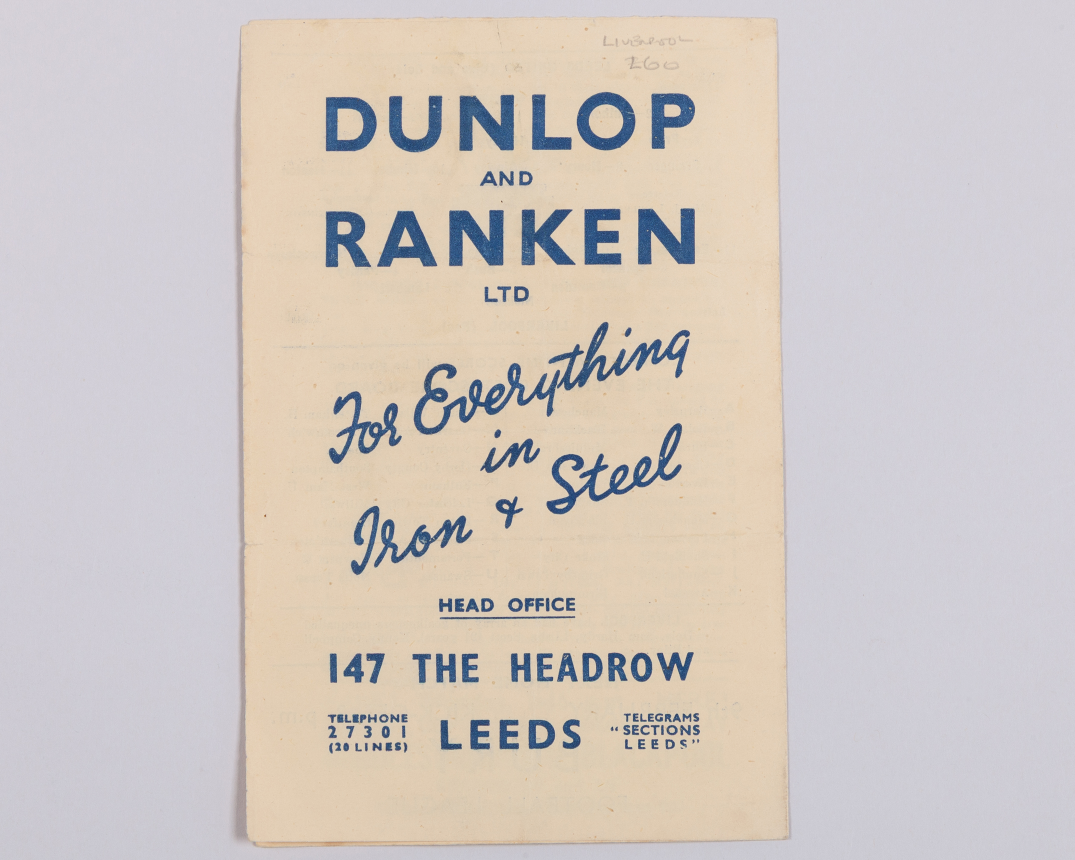 Leeds United v. Liverpool match programme, 2nd February 1946, folds, some pencil text