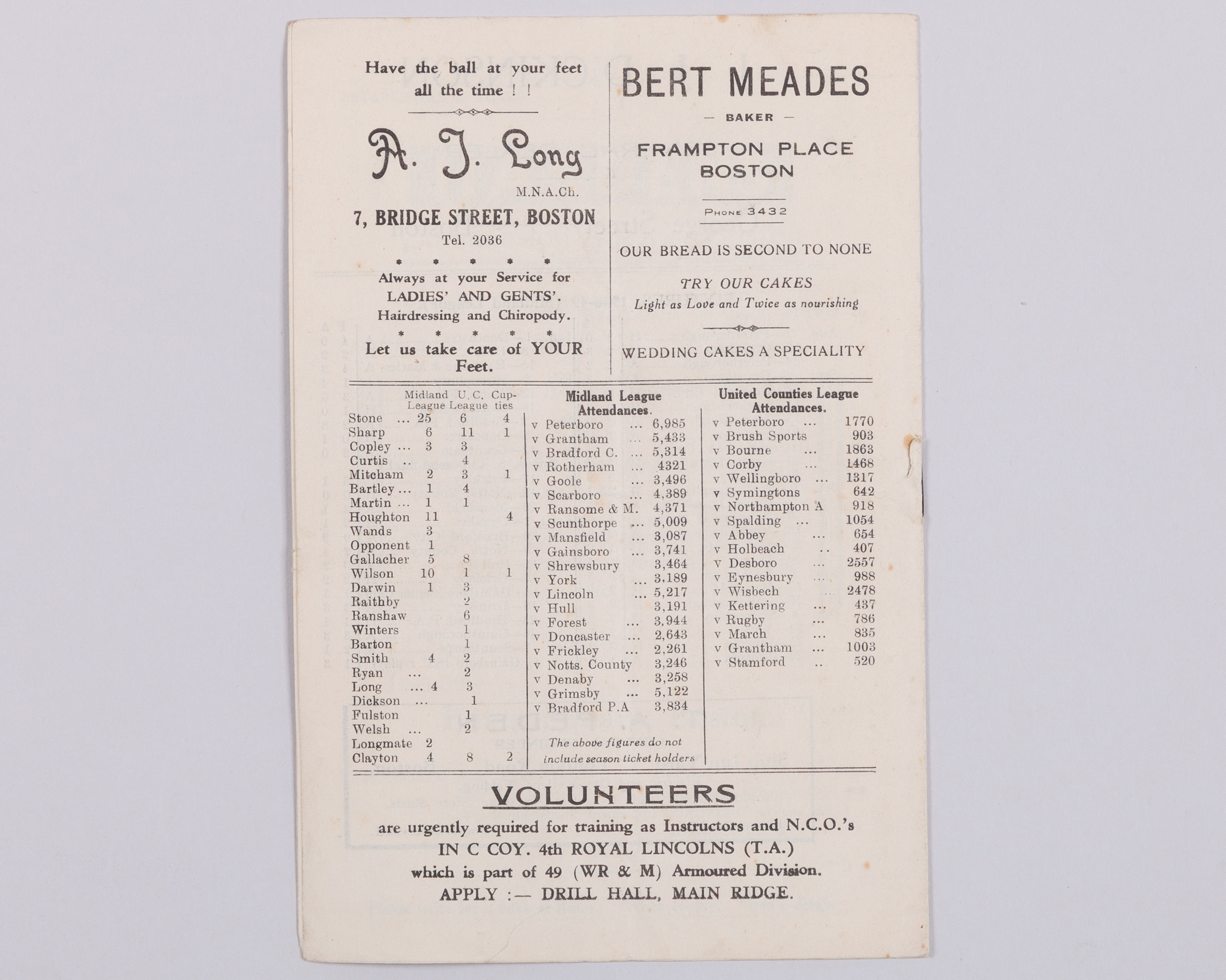 Boston United v. Leeds United Friendly match programme, 5th May 1949