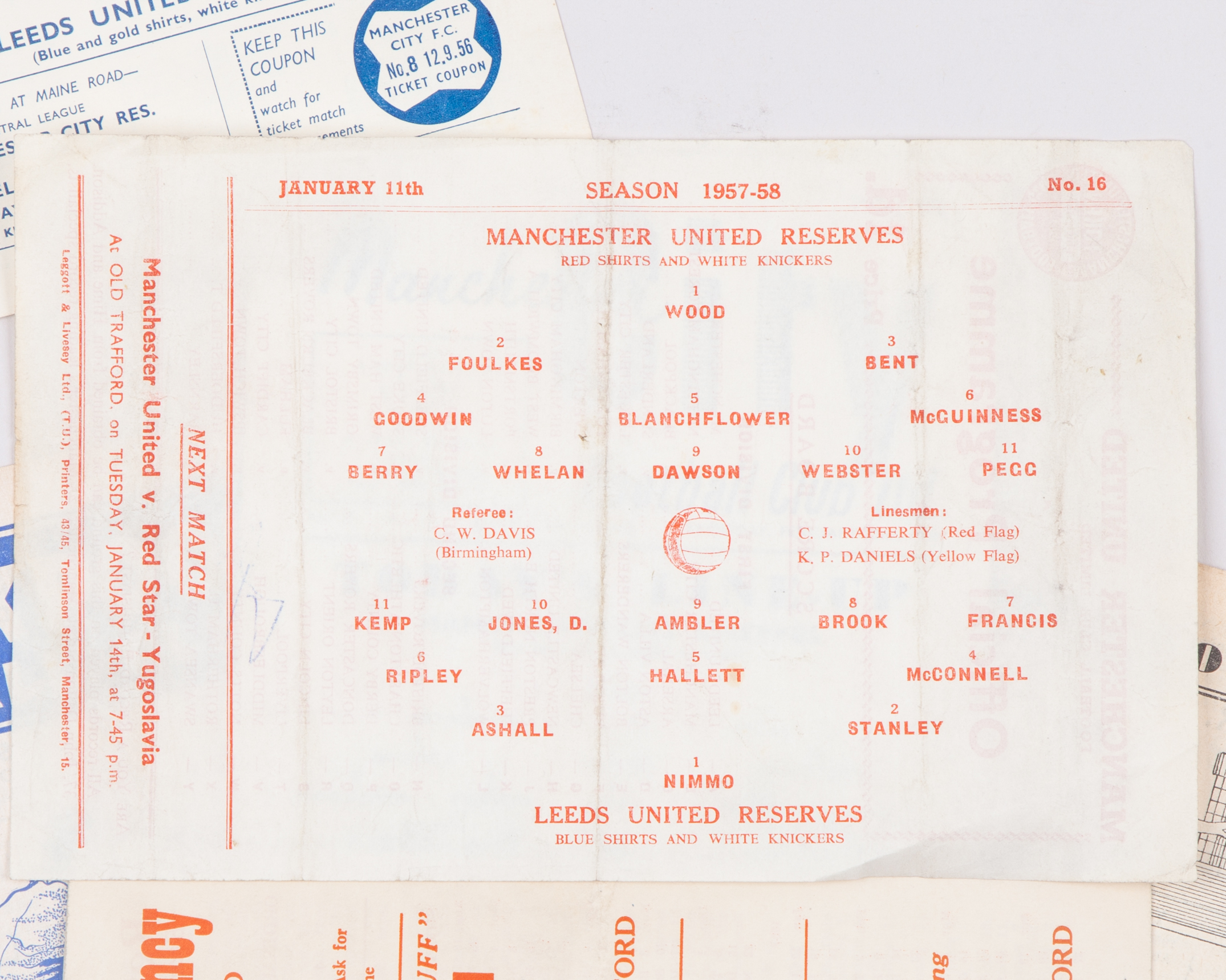 Ten Leeds United Reserve away match programmes, 1950s
