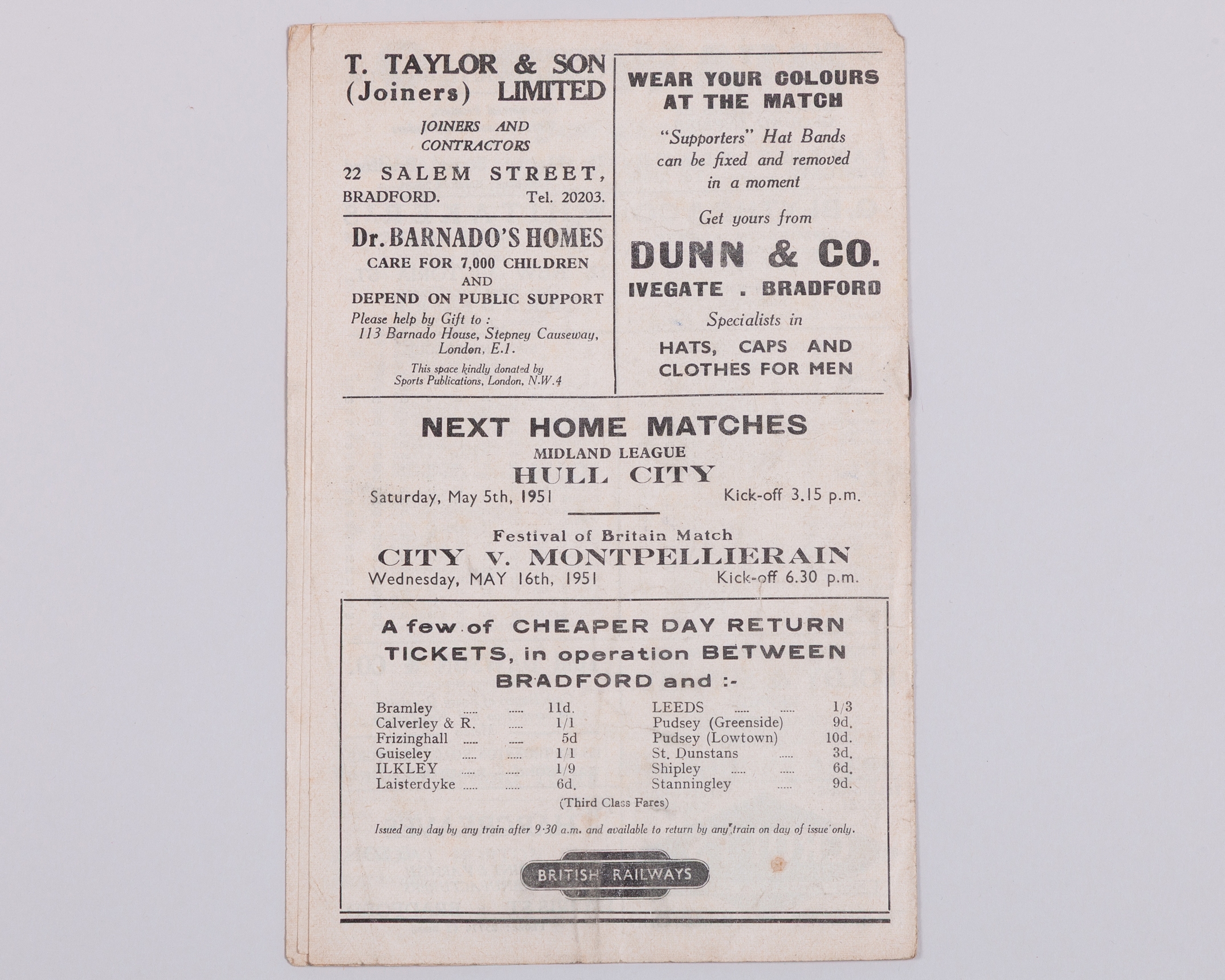 Bradford City v. Leeds United, West Riding Cup Semi-Final match programme, 1951