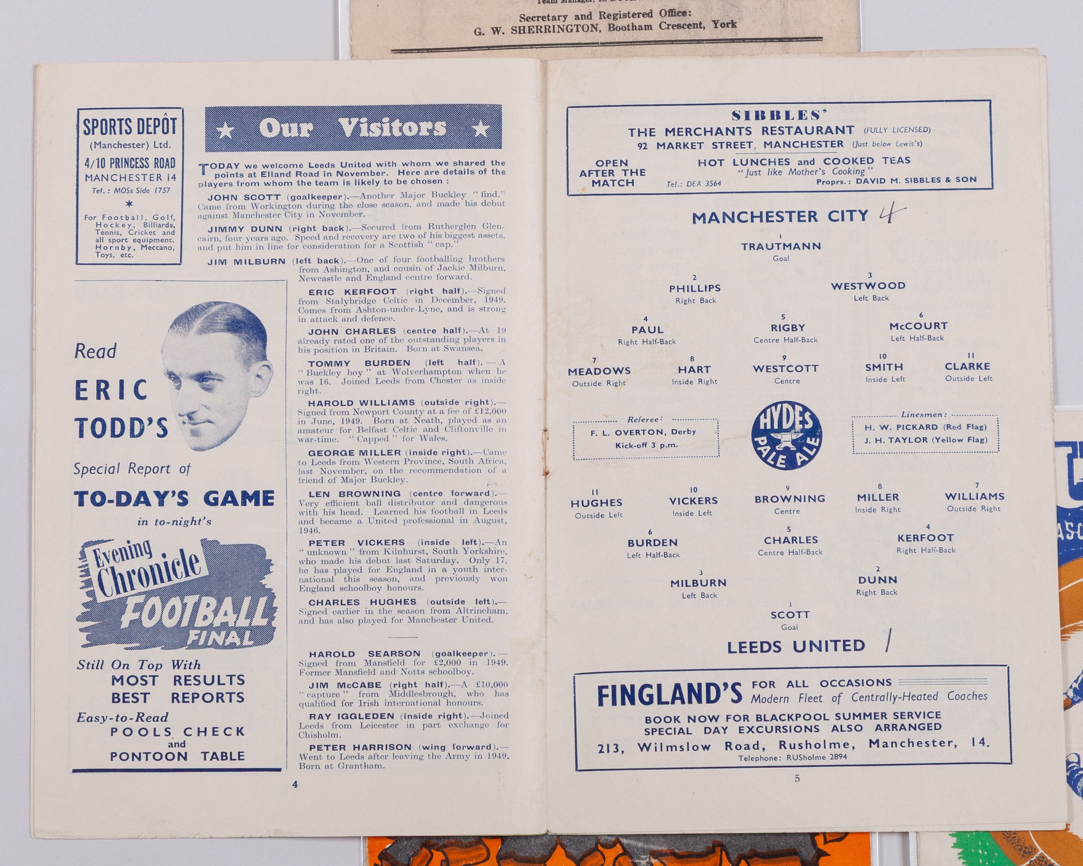 Four Leeds United away match programmes, 1951