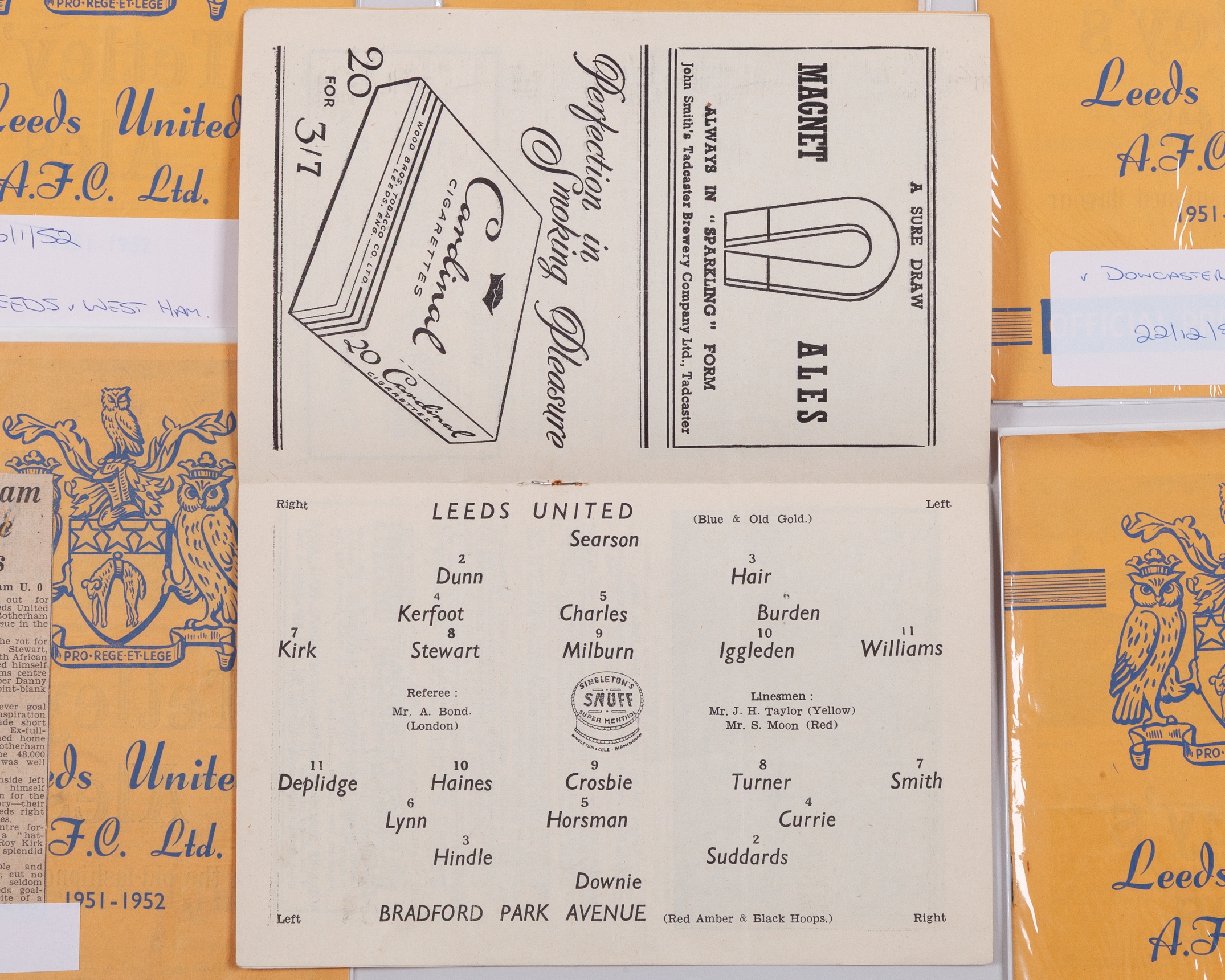 Six Leeds United home match programmes, 1951-52