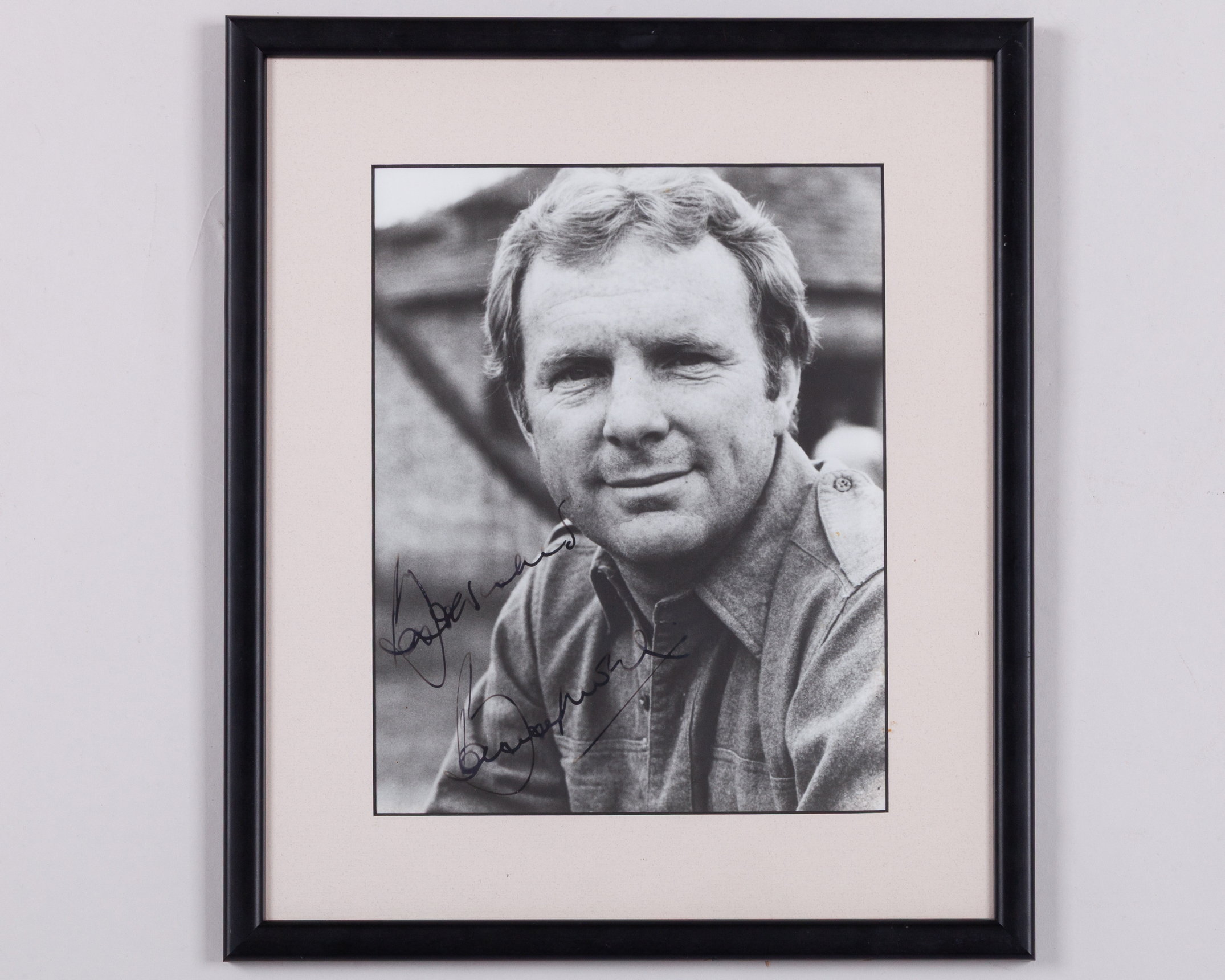 A Bobby Moore black and white autographed photograph, 10 x 8in, framed