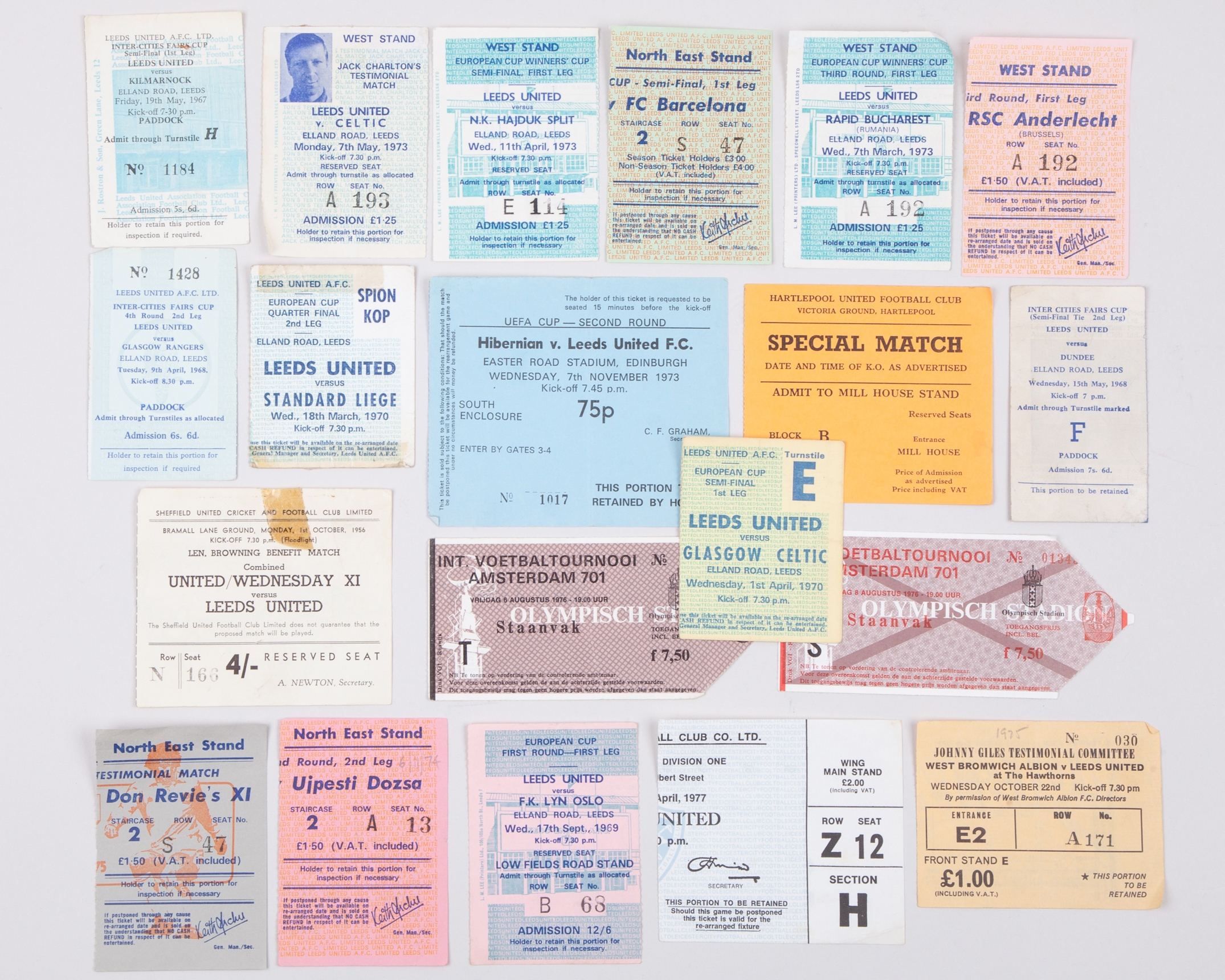 A collection of twenty Leeds United Inter-Cities, European Cup and Testimonial tickets