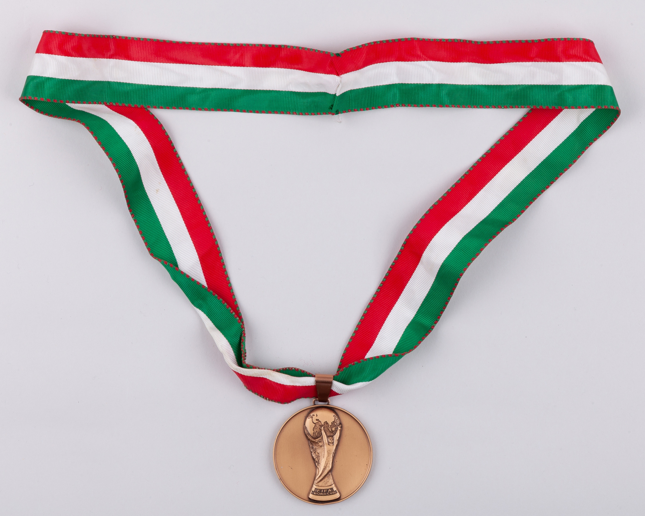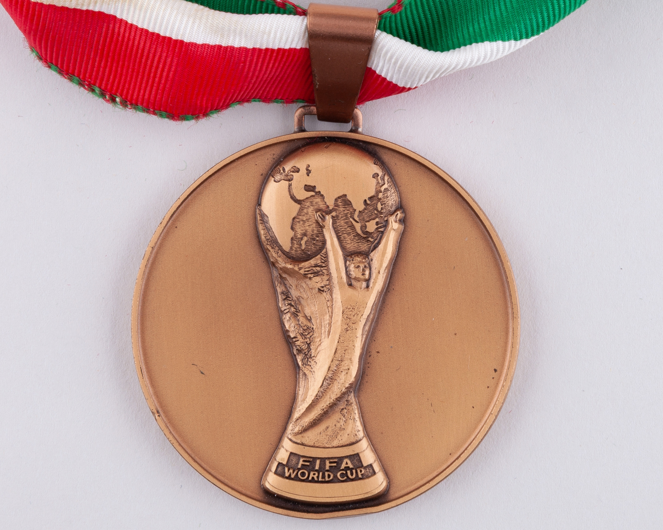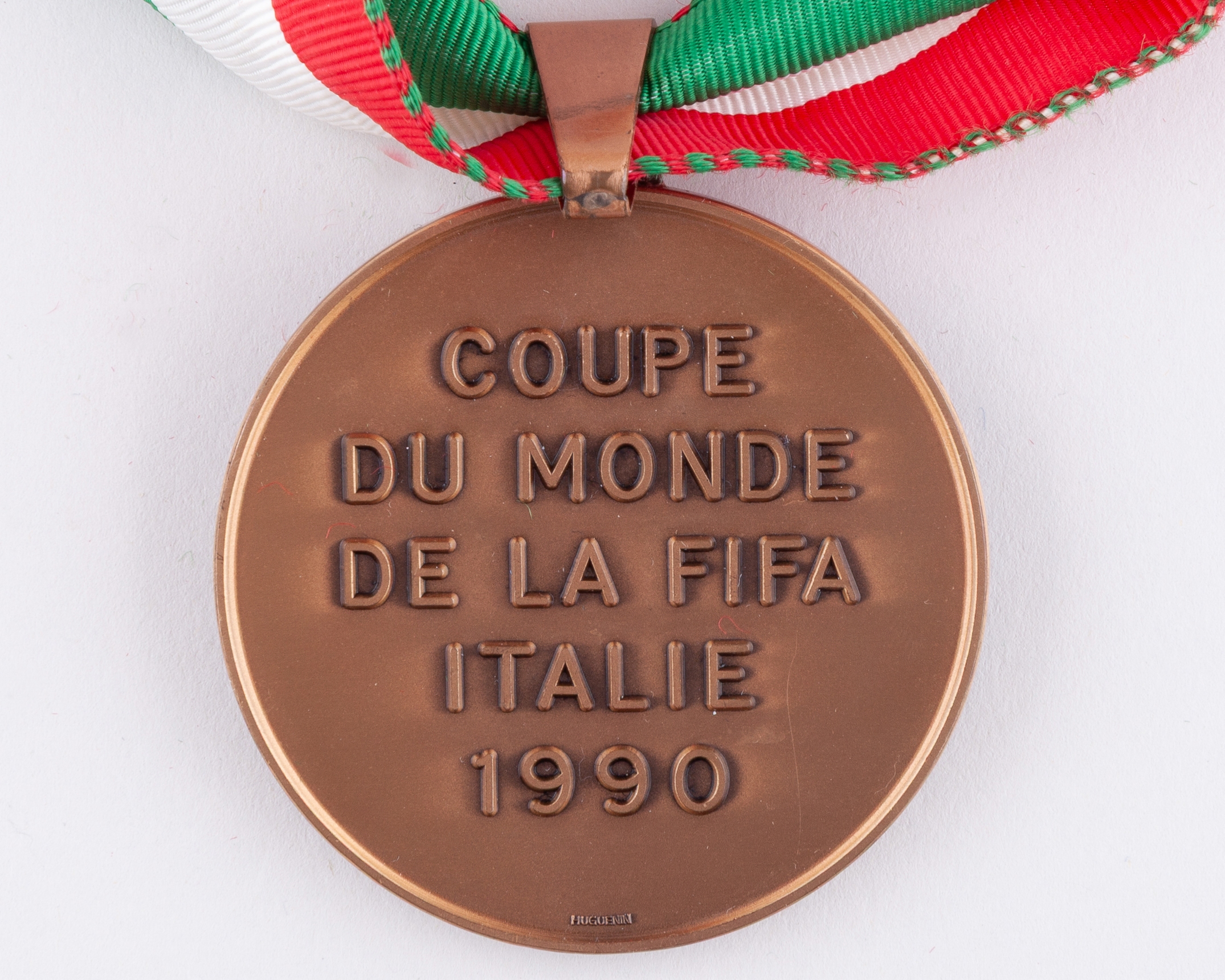 Paul Parker an Italia '90 3rd/4th Place bronze medal, the obverse inscribed FIFA WORLD CUP, the reverse inscribed COUPE DE MONDE, DE LA FIFA, ITALIE 1990 with Italian flag design ribbon