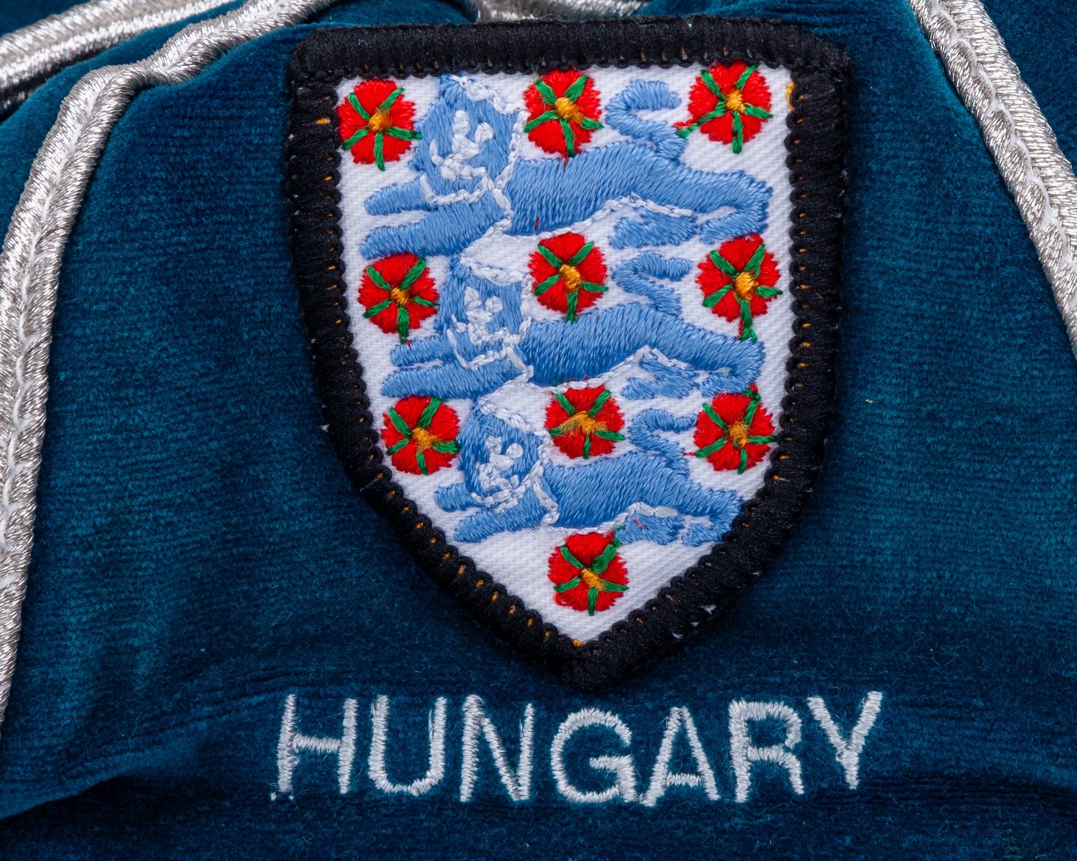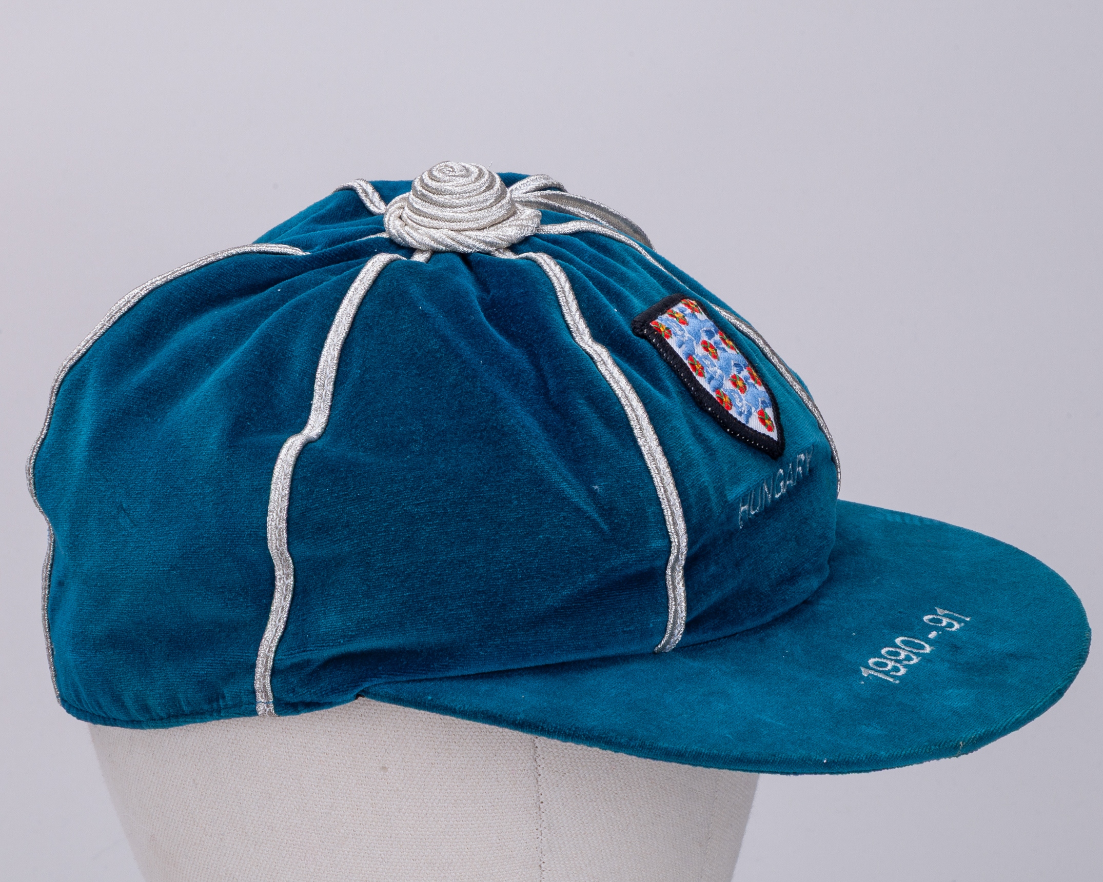 Paul Parker blue England v. Hungary International cap, 1990-91, blue velvet cap with silver tassel and braiding inscribed HUNGARY, 1990-91, the interior inscribed Paul Parker