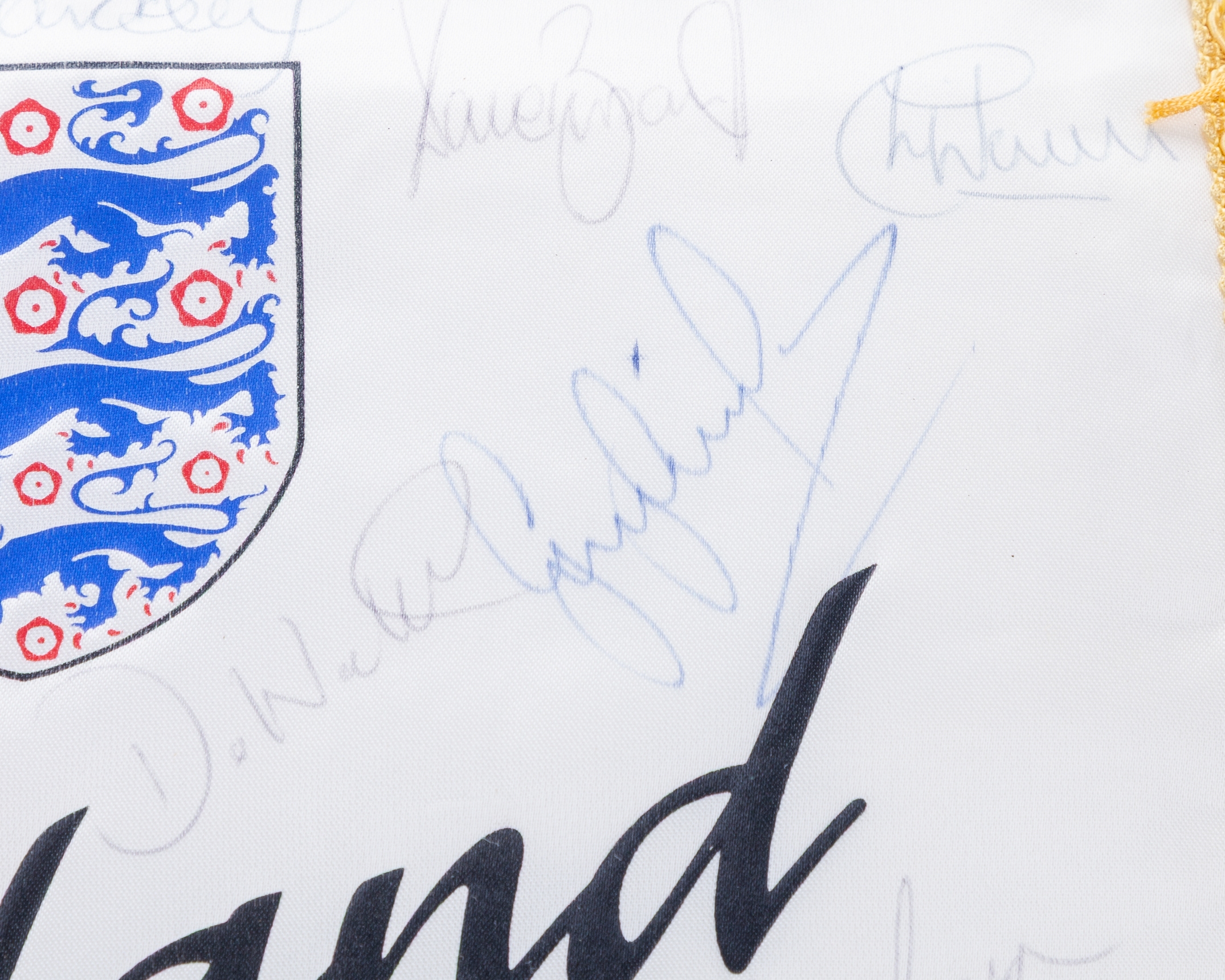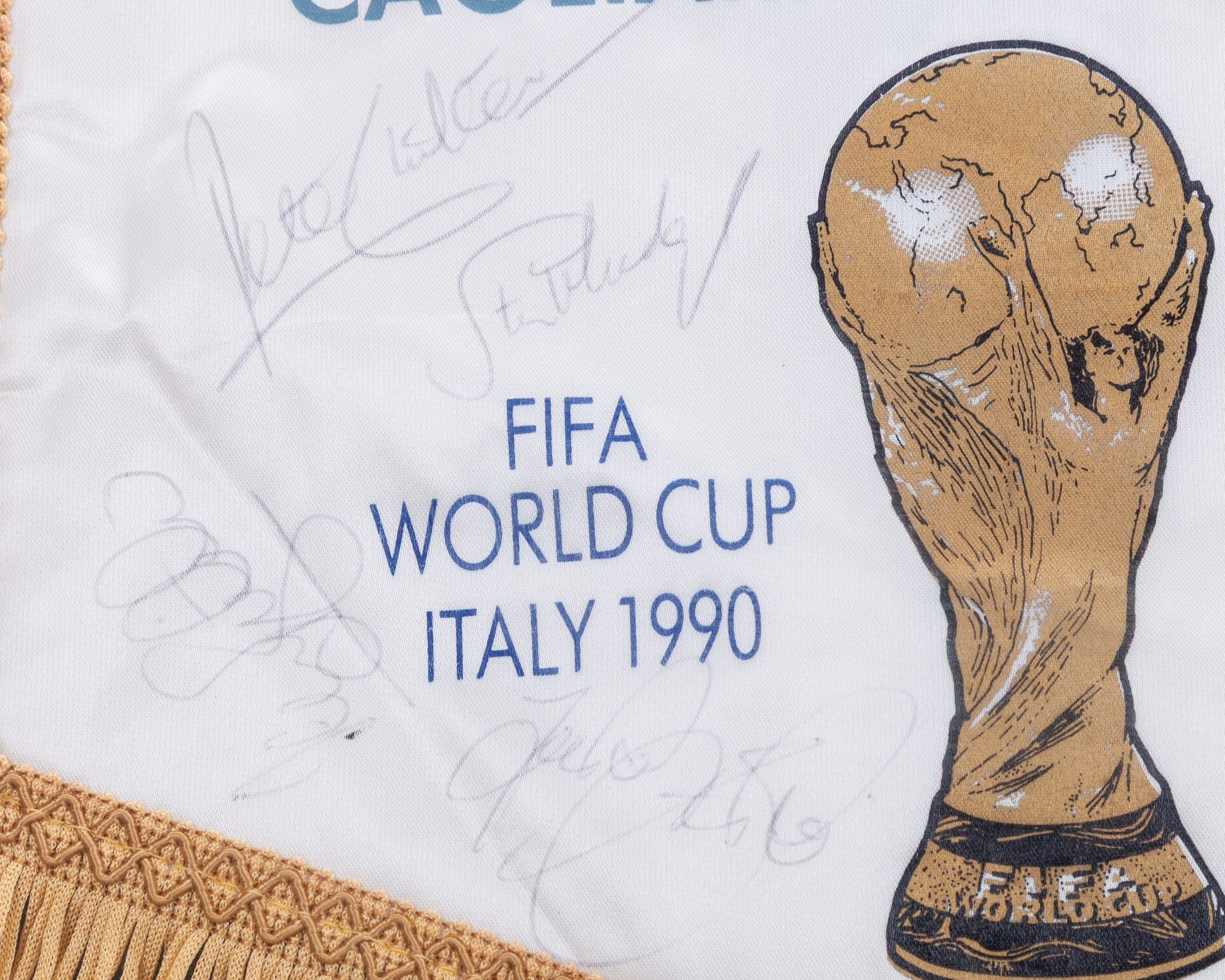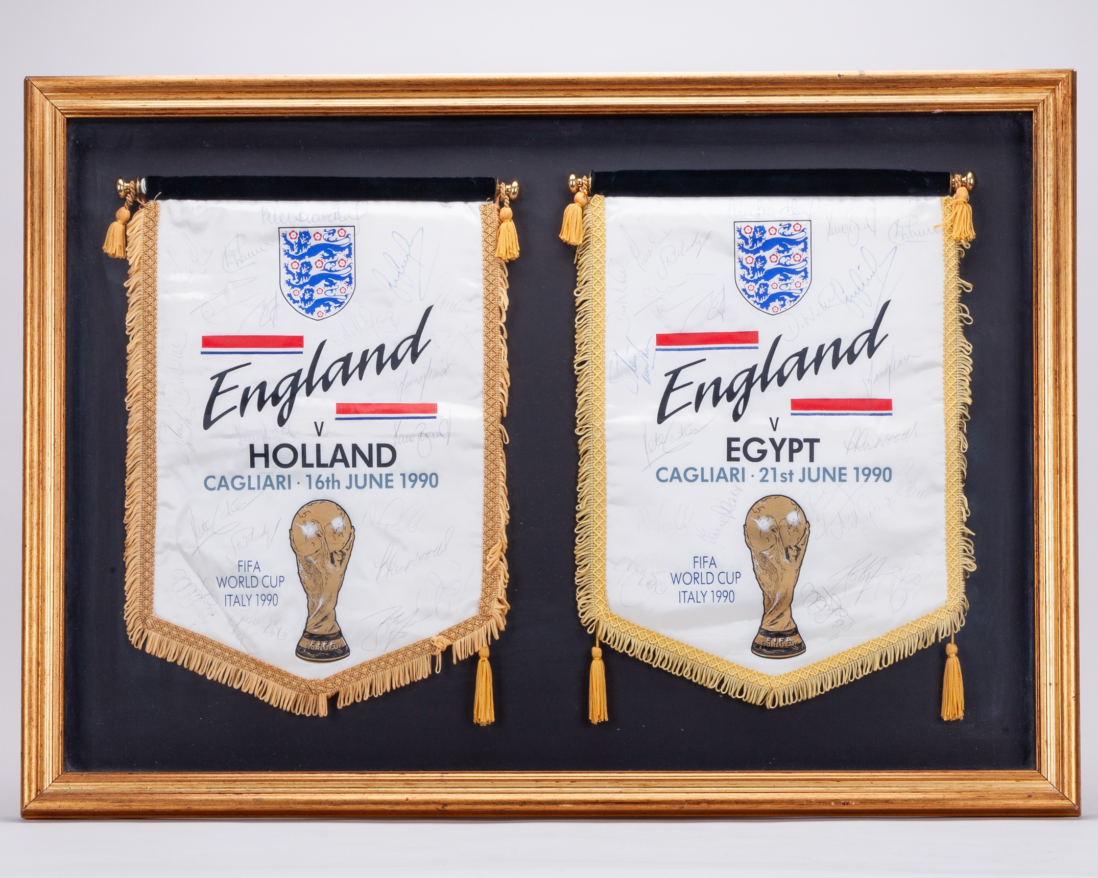 Paul Parker two England Italia 90 autographed pennants, comprising Holland, 16th June 1990 and Egypt, 21st June 1990, both mounted and framed, 84 x 60cm