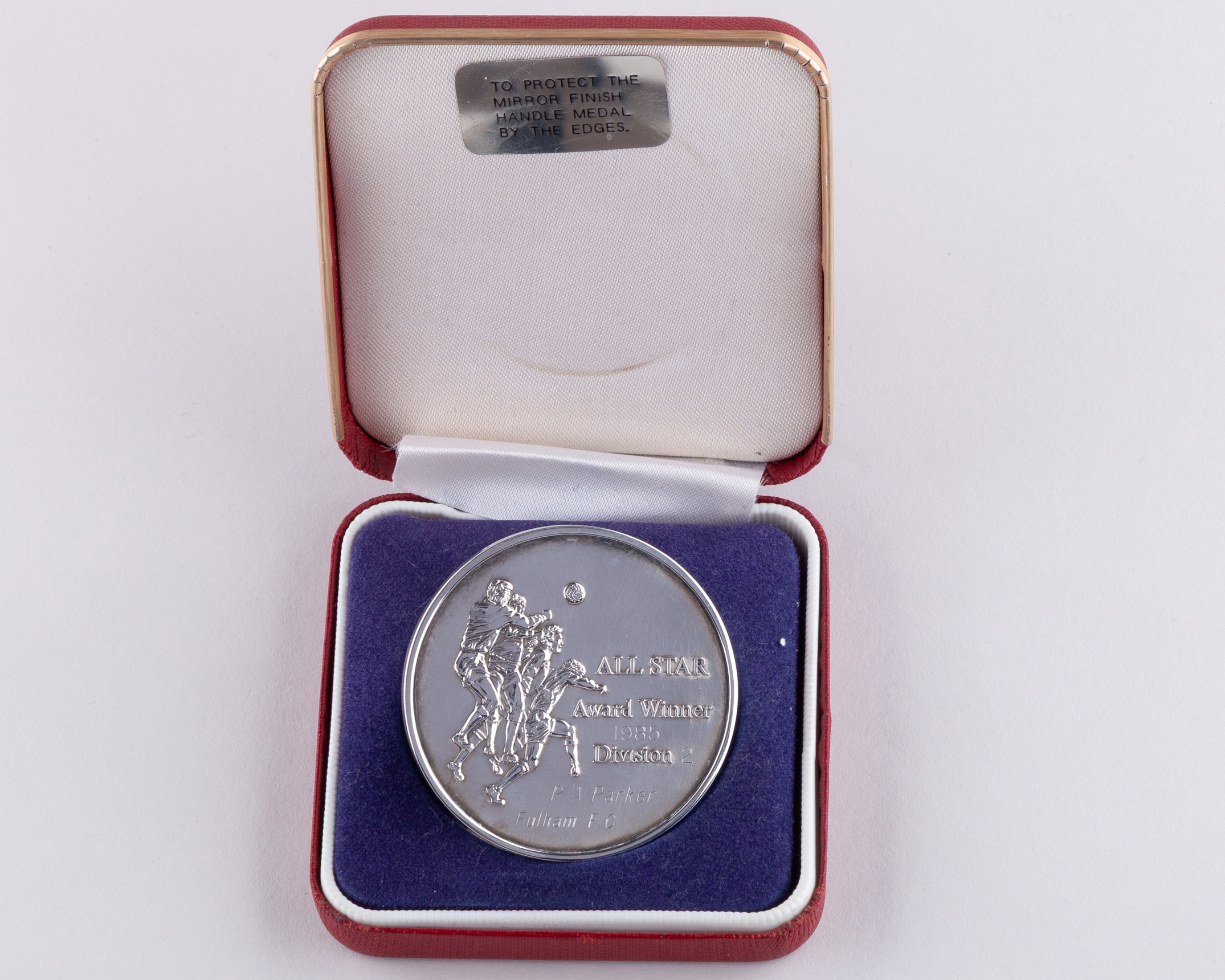 Paul Parker white-metal PFA All Star medal, the obverse inscribed PROFESSIONAL FOOTBALLERS ASSOCIATION, the reverse inscribed ALL STAR Award Winner 1985 Division 2, P A Parker Fulham F.C, in original fitted case