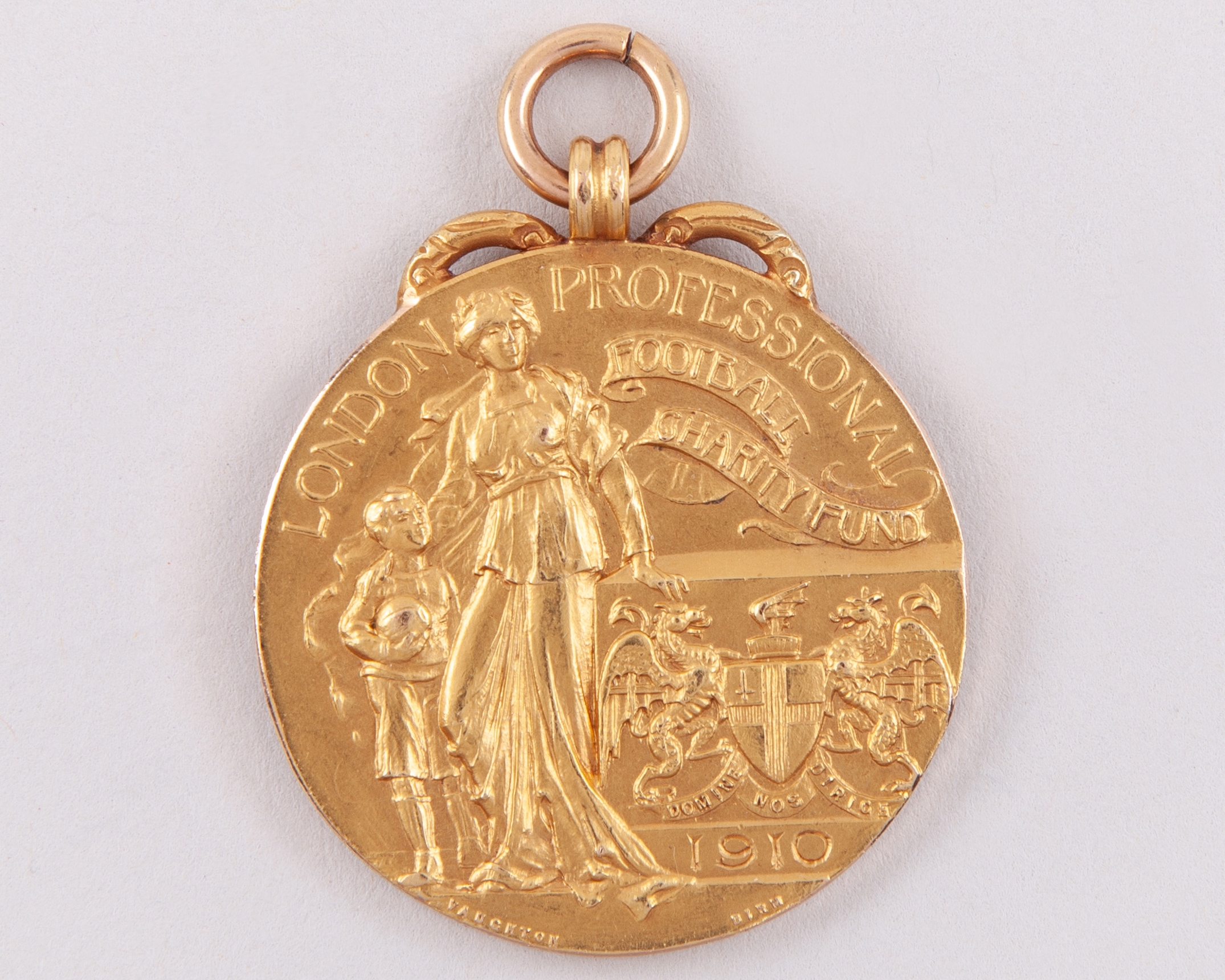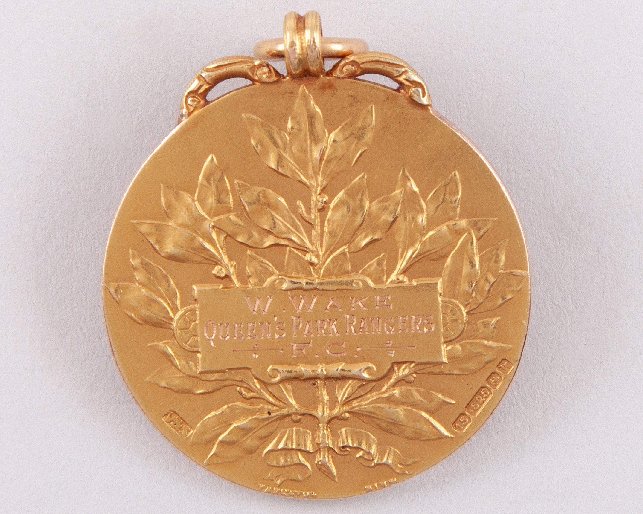 William Wake 15ct gold London Professional Charity Fund, 1910, the obverse inscribed LONDON PROFESSIONAL FOOTBALL CHARITY FUND 1910, the reverse inscribed W. WAKE QUEEN'S RANGERS F.C., in original fitted case, 21grms