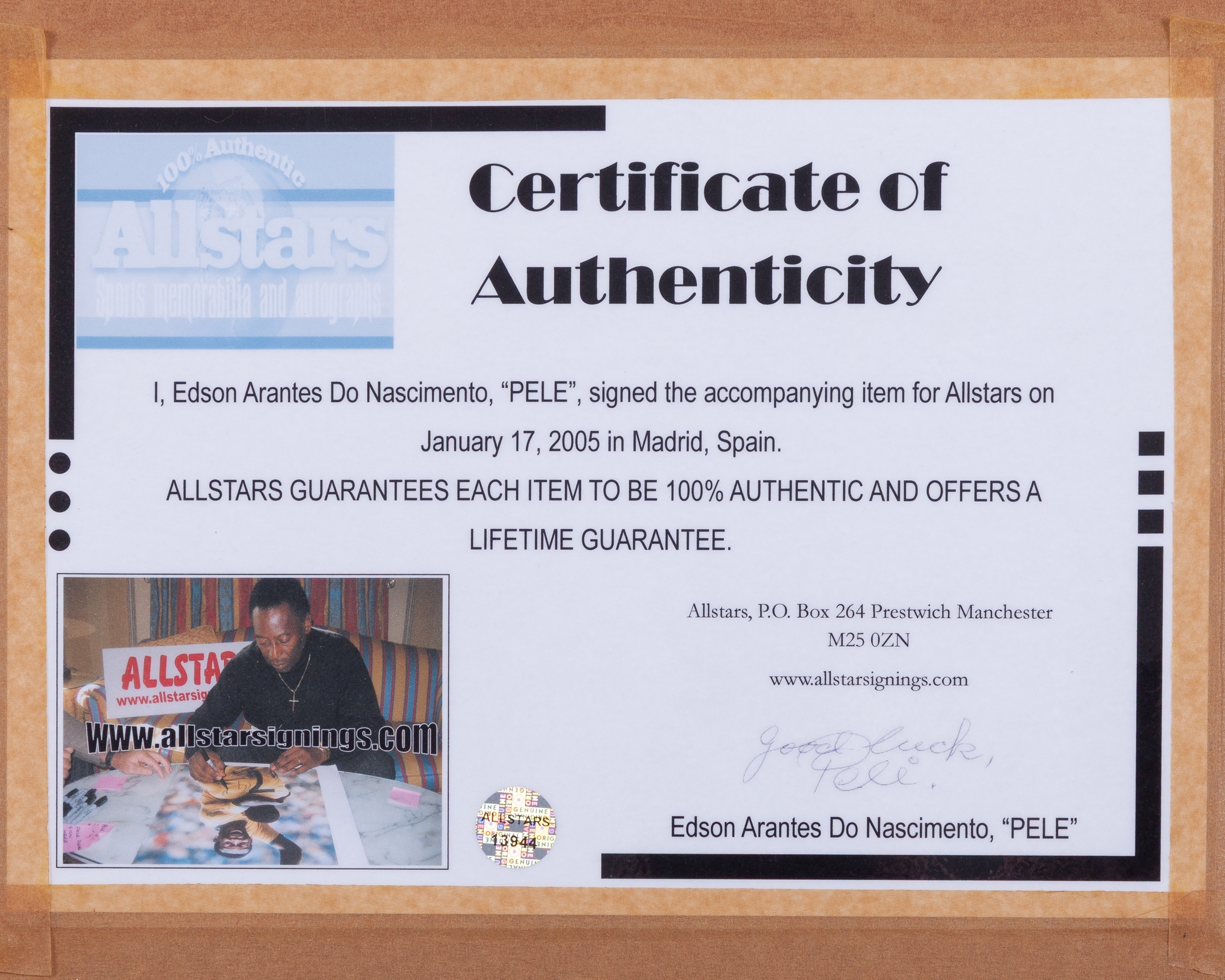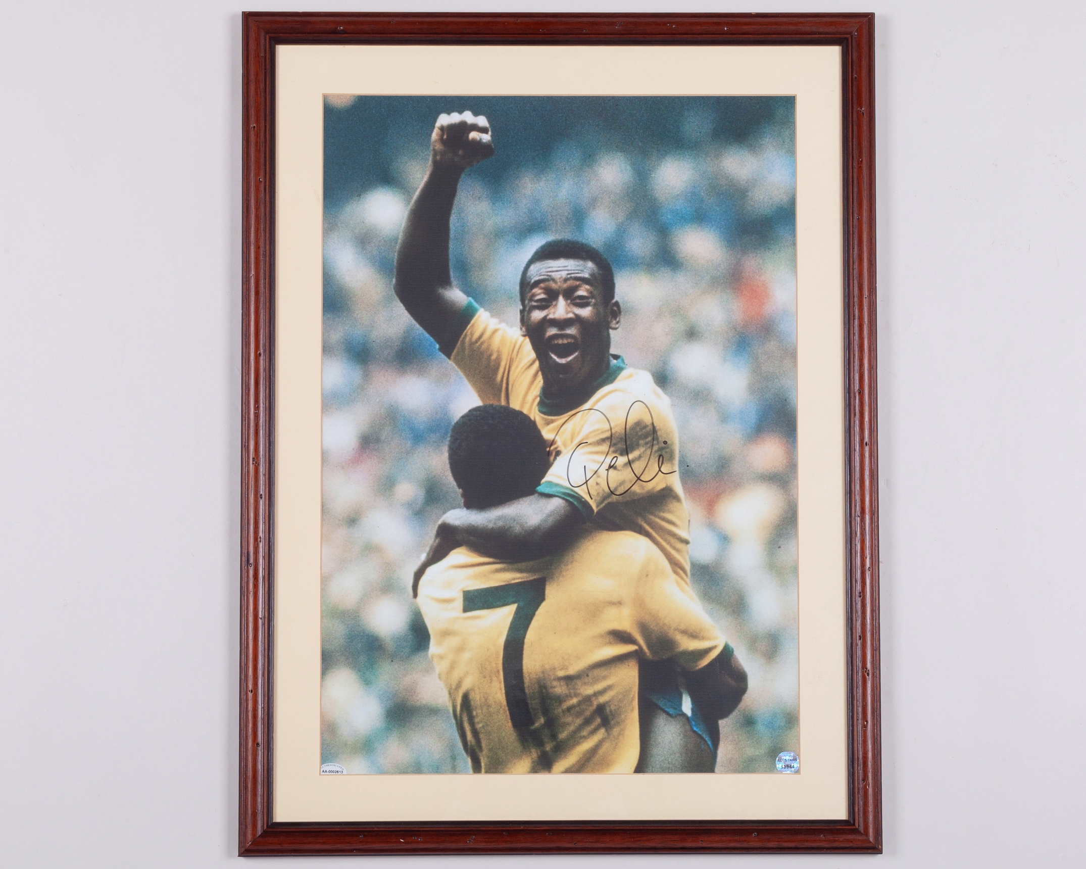 An autographed Pele print, with COA, framed and glazed, 72 x 54cm