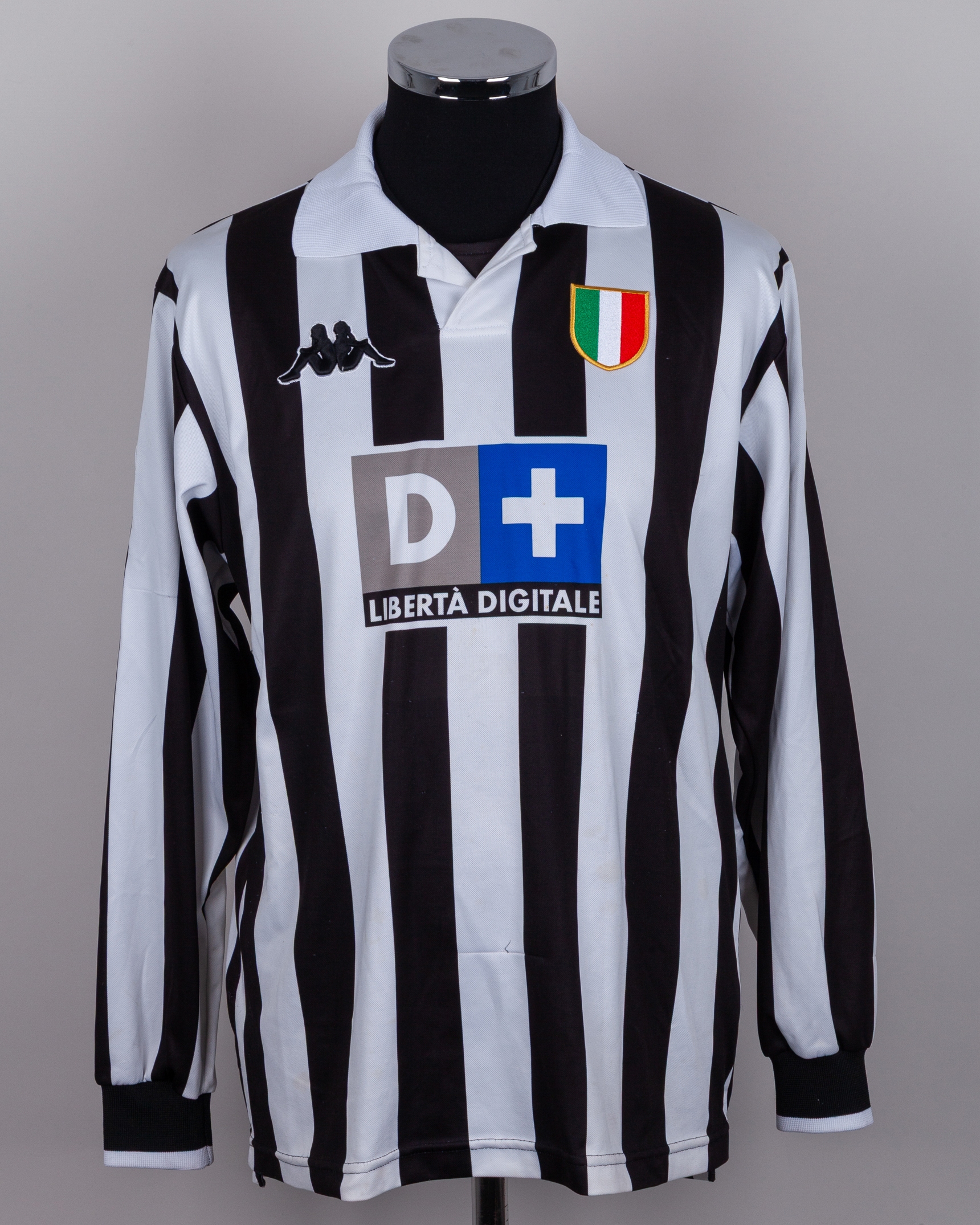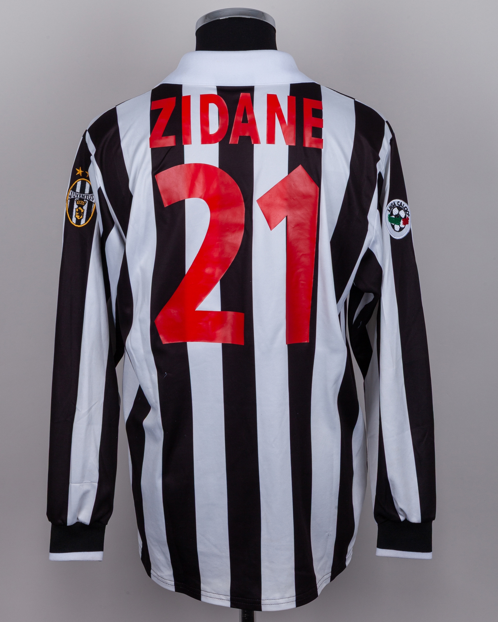 Zinedine Zidane black and white No.21 Juventus long-sleeved shirt, Kappa, M, with v-neck collar and embroidered badge, the reverse lettered ZIDANE, the right sleeve with Lega Calcio flash, with COA