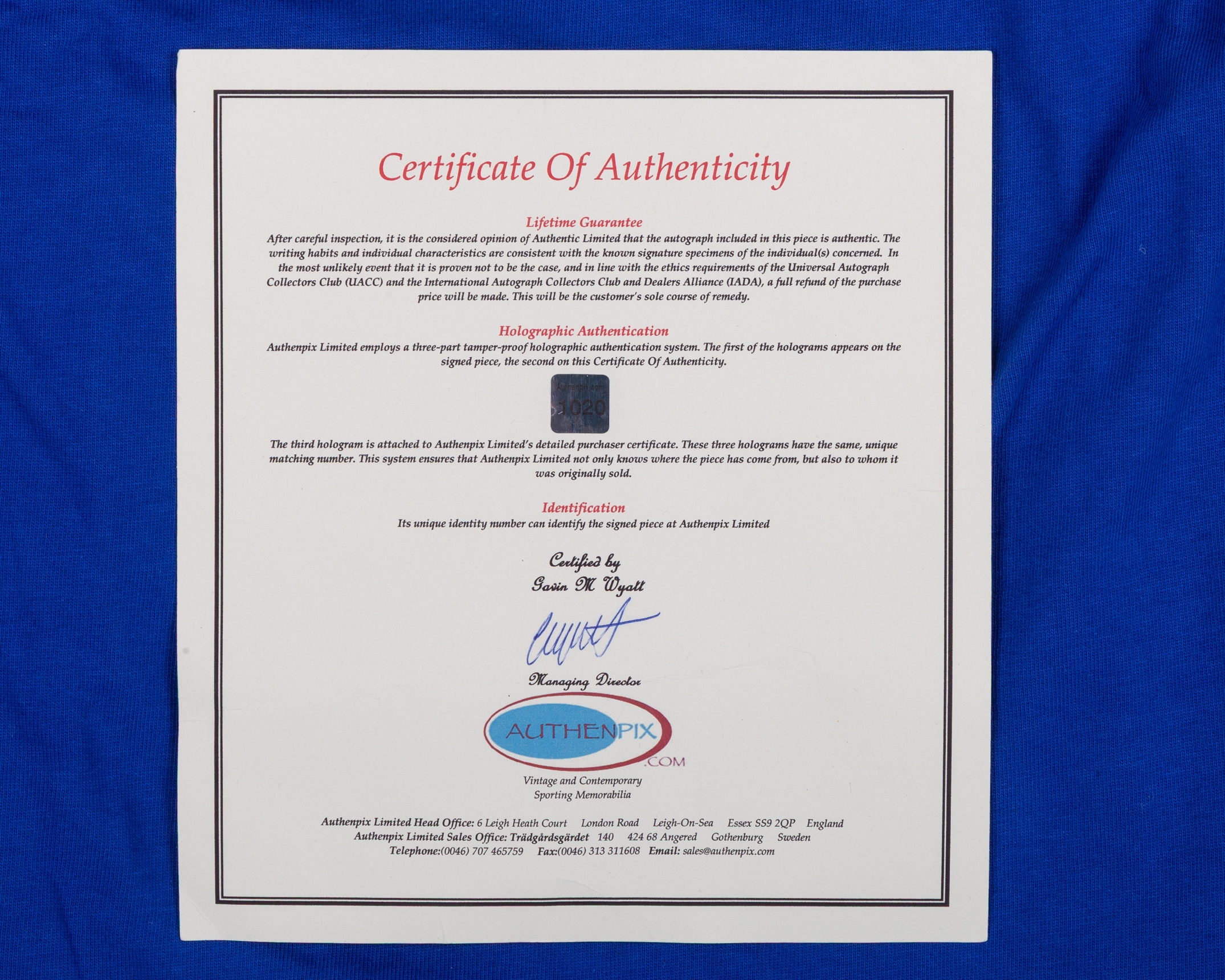 George Best autographed blue Manchester United replica long-sleeved shirt