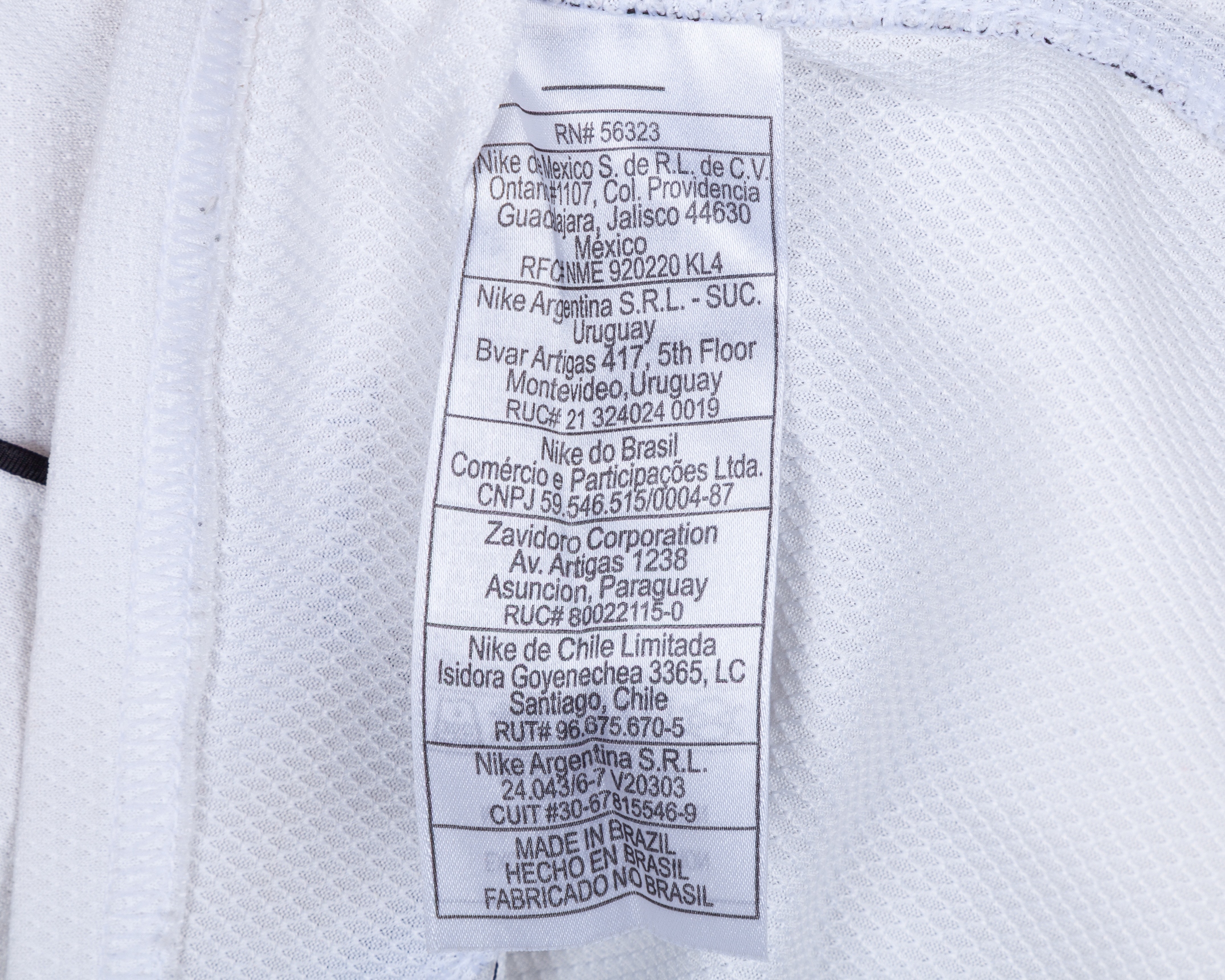 Ronaldo white No.9 Corinthians autographed long-sleeved shirt, 2009-10, Nike, L, with v-neck style collar and printed badge, the reverse lettered RONALDO, with several faded autographs on the front, with some holes and pulls