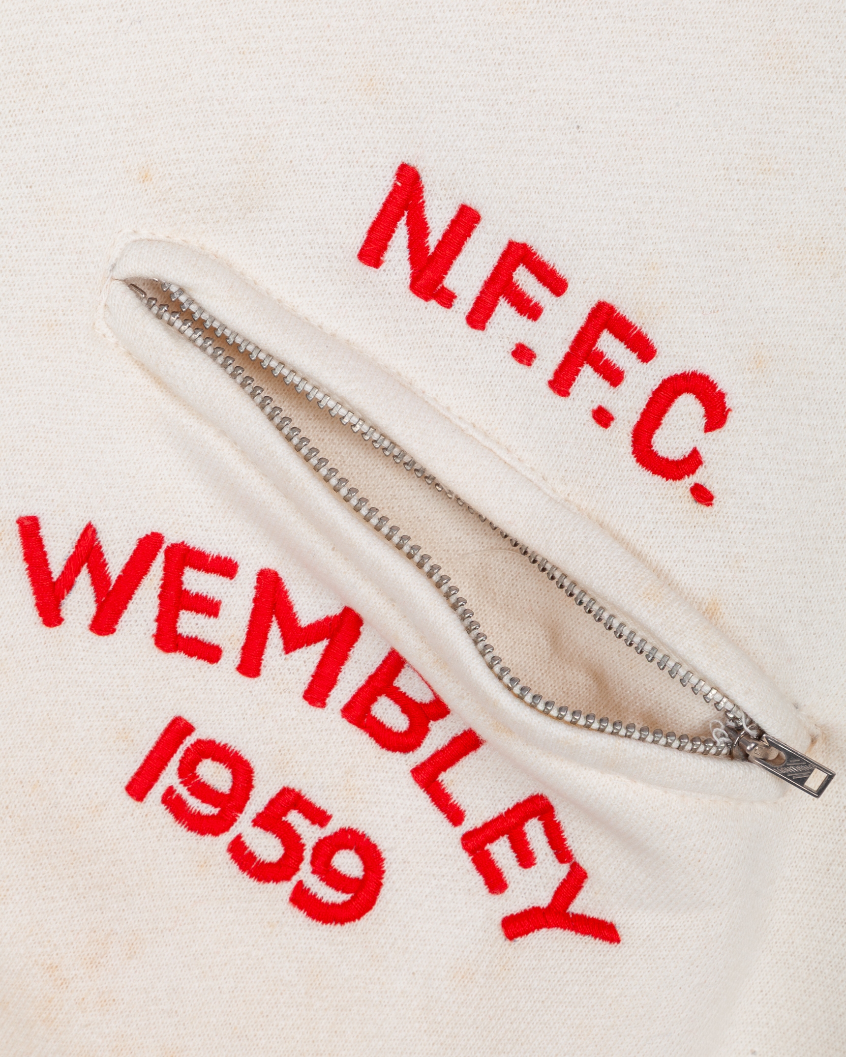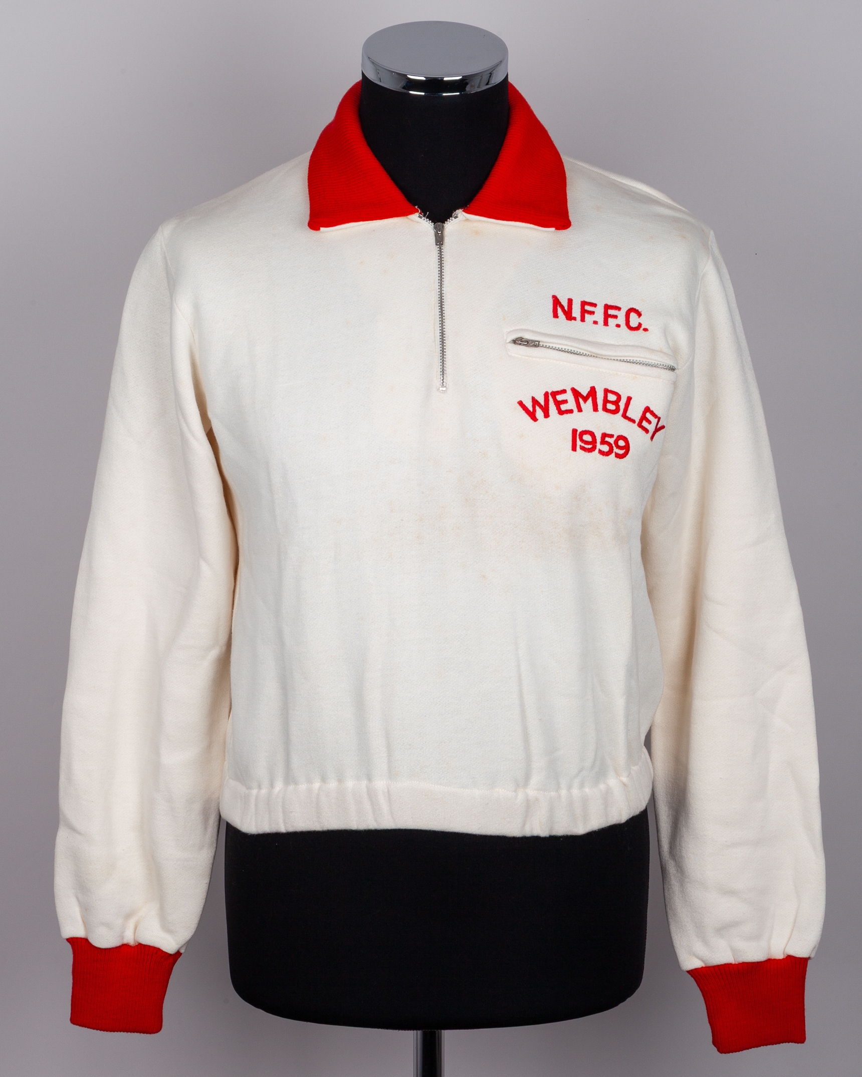 A white and red Nottingham Forest F.A.Cup Final tracksuit top, 1959