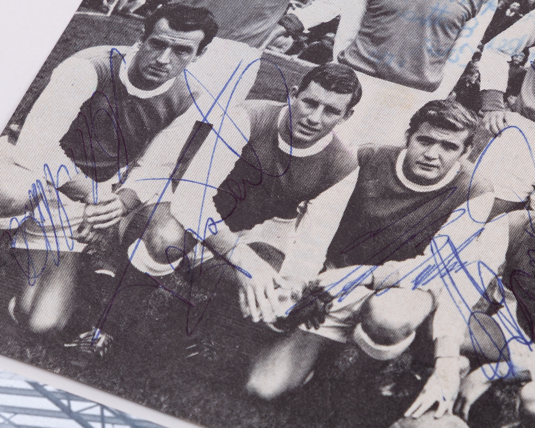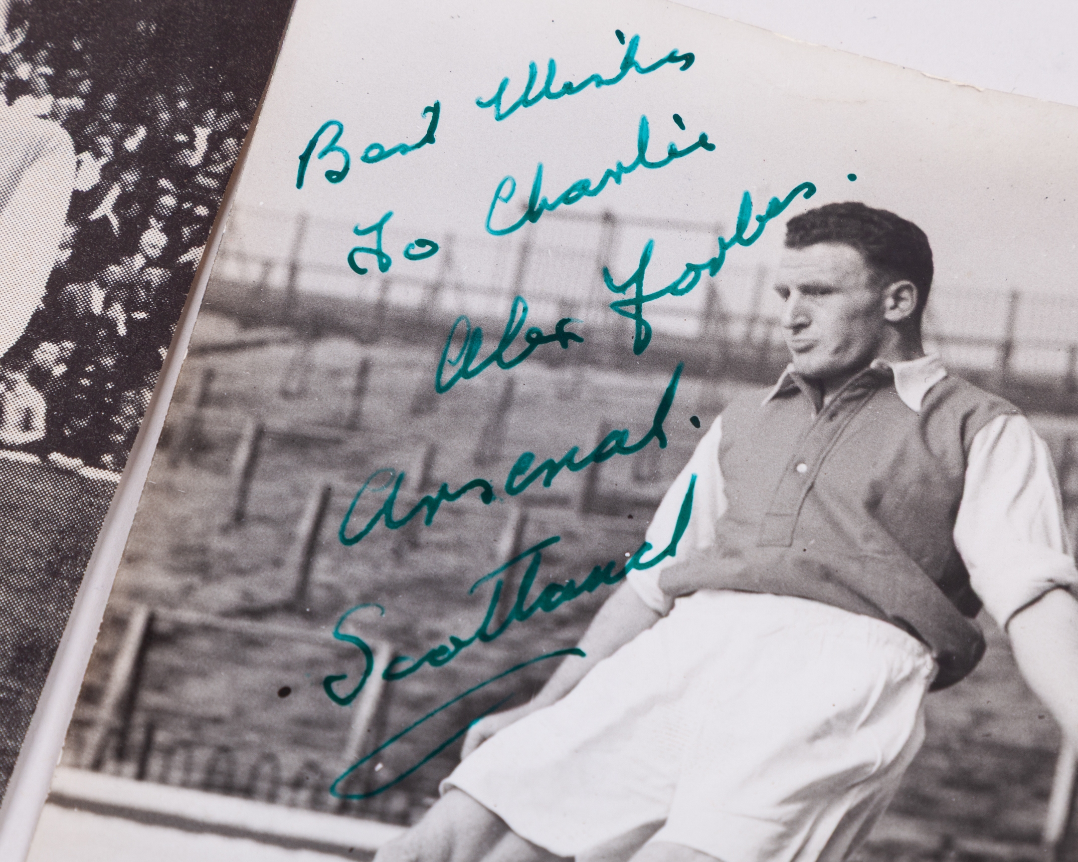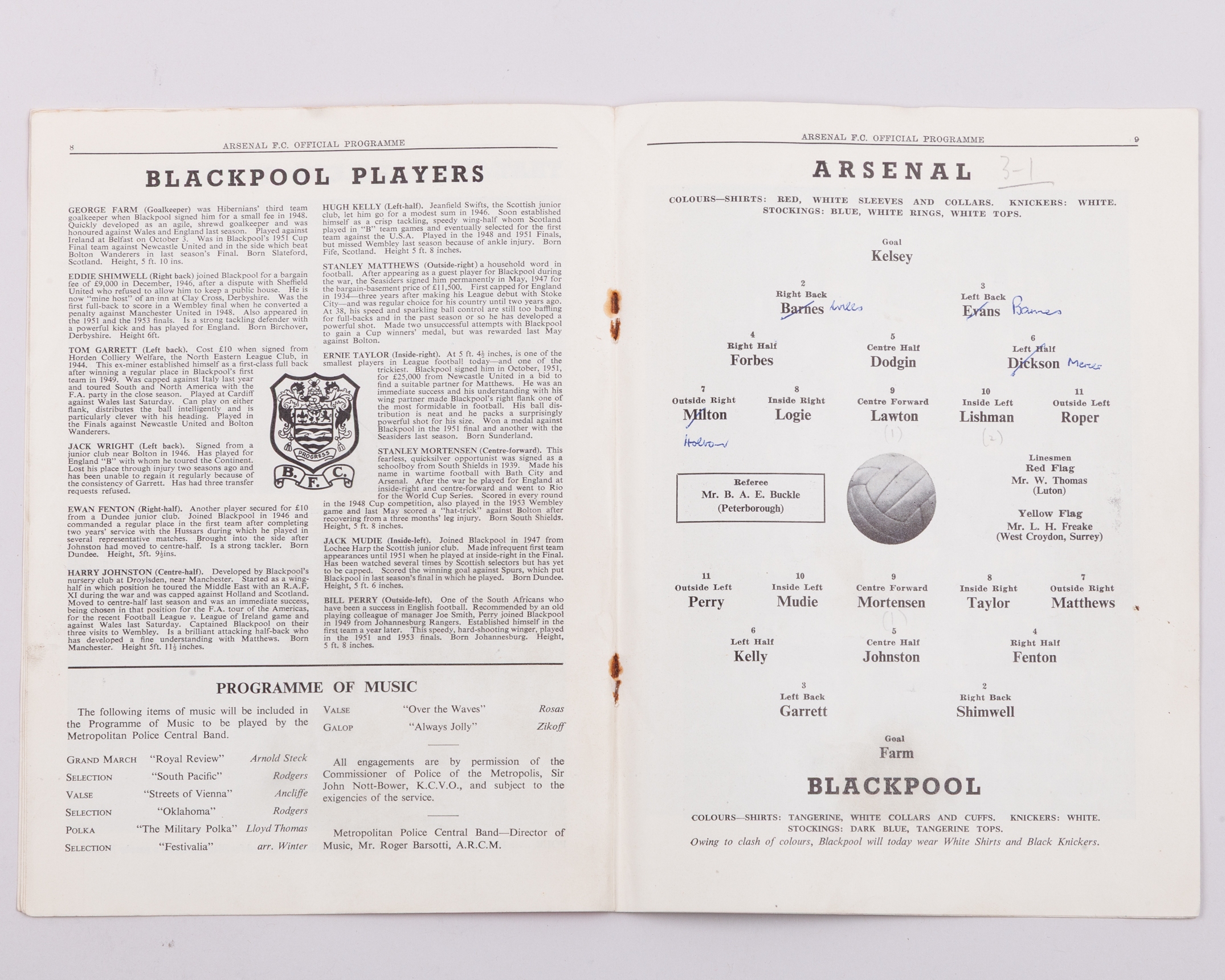 Selection of Arsenal autographs including a 1960s team line-up, with eight autographs and COA, Charlie George first day cover, five Arsenal programmes including Arsenal v. Blackpool 8th February 1947, Arsenal v. Preston North End 31st January 1948, Arsenal v. Blackpool Charity Shield 12th October 1953 etc., a few with annotations
